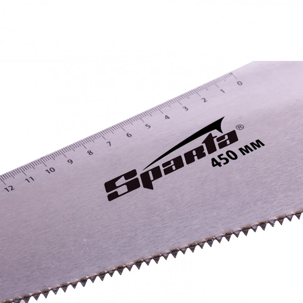 Ножовка по дереву Sparta 231875 с полотном длиной 450 мм, с калеными зубьями с шагом 7-8 TPI, с линейкой и деревянной рукояткой, предназначена для продольно-поперечного распиливания древесины. Благодаря зубьям с 2D-заточкой подходит для двухстороннего реза. Режущую кромку можно перетачивать. На полотно нанесена измерительная шкала, позволяющая производить замеры, не тратя время на поиск линейки. Ножовка используется в столярном и плотницком деле, а также полезна дома и на даче.ПреимуществаПрочность — полотно изготовлено из пружинной холоднокатаной стали 65Mn, характеризующейся стойкостью к постоянным нагрузкам.Высокий ресурс — зубья закалены до твердости 55 HRC и хорошо держат заточку.Производительность — крупные зубья с шагом 7-8 TPI обеспечивают быстрый рез.Устойчивость к коррозии — на полотно нанесено защитное лаковое покрытие.Надежность — полотно крепко зафиксировано в рукоятке при помощи винтов.Комфорт во время работы — рукоятка выполнена из дерева и покрыта лаком для защиты от рассыхания и разбухания.