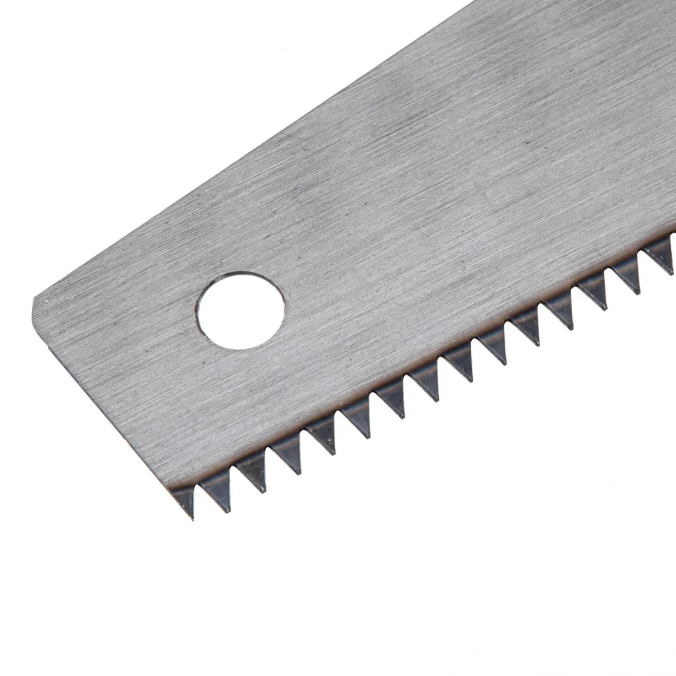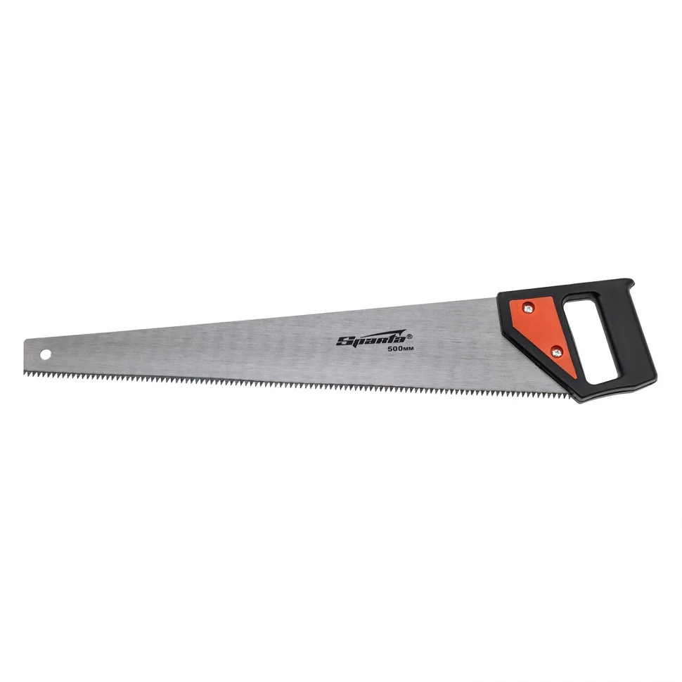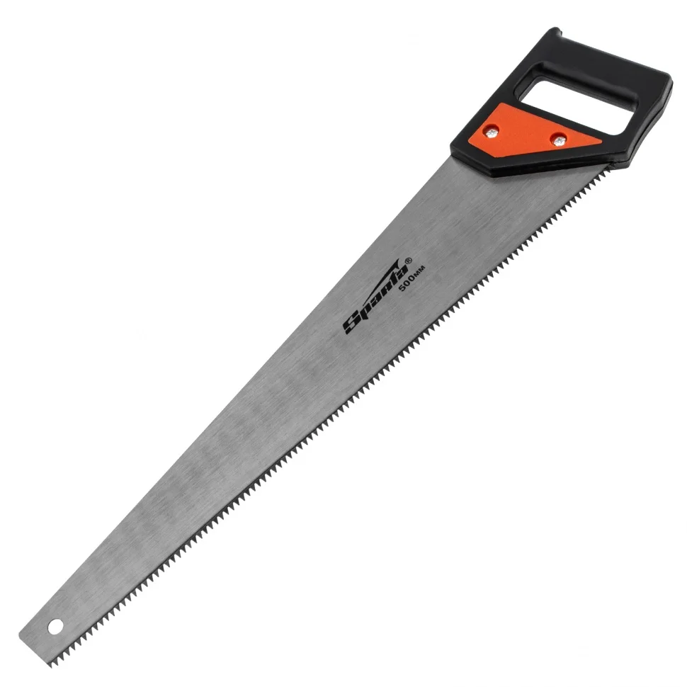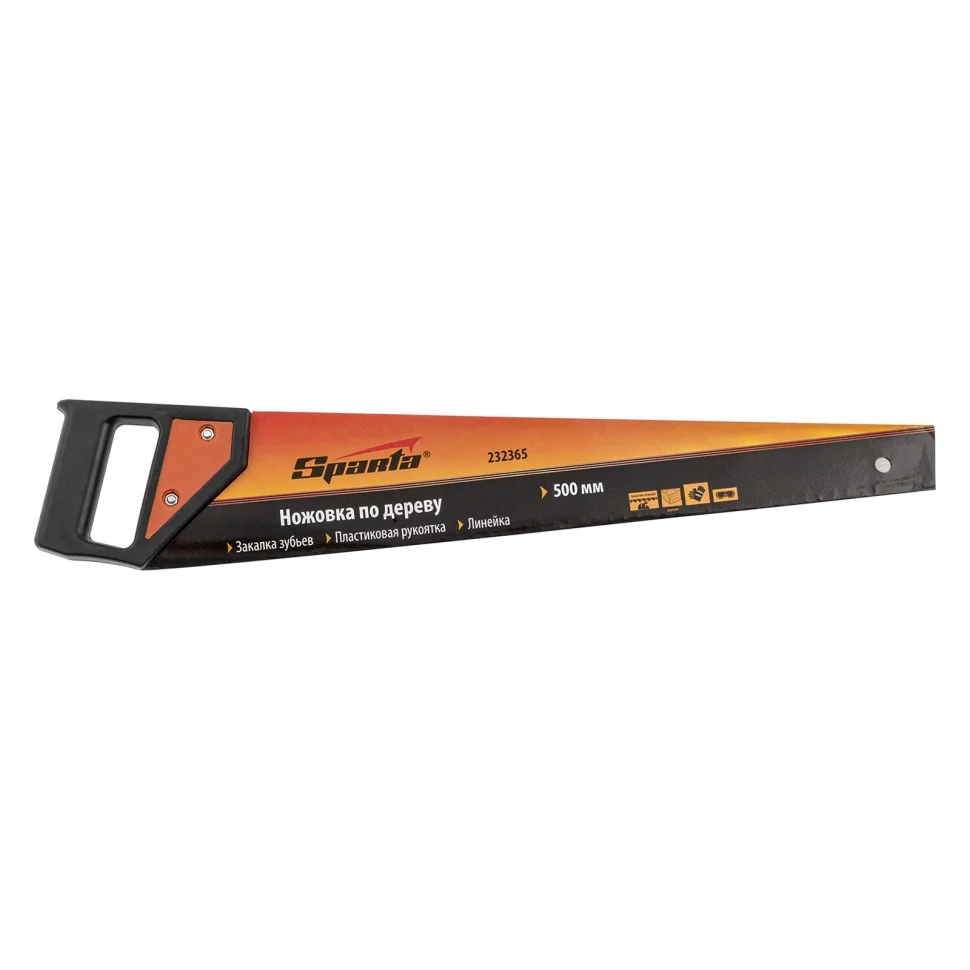 Ножовка по дереву Sparta 232365 с полотном длиной 500 мм, калеными зубьями с шагом 5-6 TPI и пластиковой рукояткой, предназначена для продольно-поперечного распиливания древесины. Благодаря зубьям с 2D-заточкой подходит для двухстороннего реза. Режущую кромку можно перетачивать. Ножовка используется в столярном и плотницком деле, а также полезна дома и на даче.Преимущества Прочность — полотно изготовлено из пружинной холоднокатаной стали 65Mn, характеризующейся стойкостью к постоянным нагрузкам. Высокий ресурс — зубья закалены до твердости 55 HRC и хорошо держат заточку. Производительность — крупные зубья с шагом 5-6 TPI обеспечивают быстрый рез. Устойчивость к коррозии — на полотно нанесено защитное лаковое покрытие. Надежность — полотно крепко зафиксировано в рукоятке при помощи винтов. Долговечность — рукоятка выполнена из легкой и прочной пластмассы, устойчивой к повреждениям.
