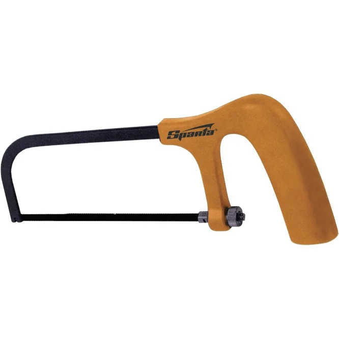 Ножовка Sparta 775135 длиной 150 мм, с пластмассовой ручкой, предназначена для ручной резки металла и пластика. Она рассчитана на бытовое использование и пригодится в хозяйстве при проведении несложных работ. Малая длина 150 мм позволяет работать в труднодоступных местах.ПреимуществаМеталлическая рама обладает необходимой твердостью и стойкостью к коррозии.Ножовка с простым механизмом натяжения полотна не требует специальных навыков для эксплуатации.Полотно на ножовке можно менять, в качестве запасного используется артикул 77710.Пластиковая рукоятка удобно ложится в руку и не проскальзывает.Небольшой вес ножовки 156 г снижает усталость при работе.