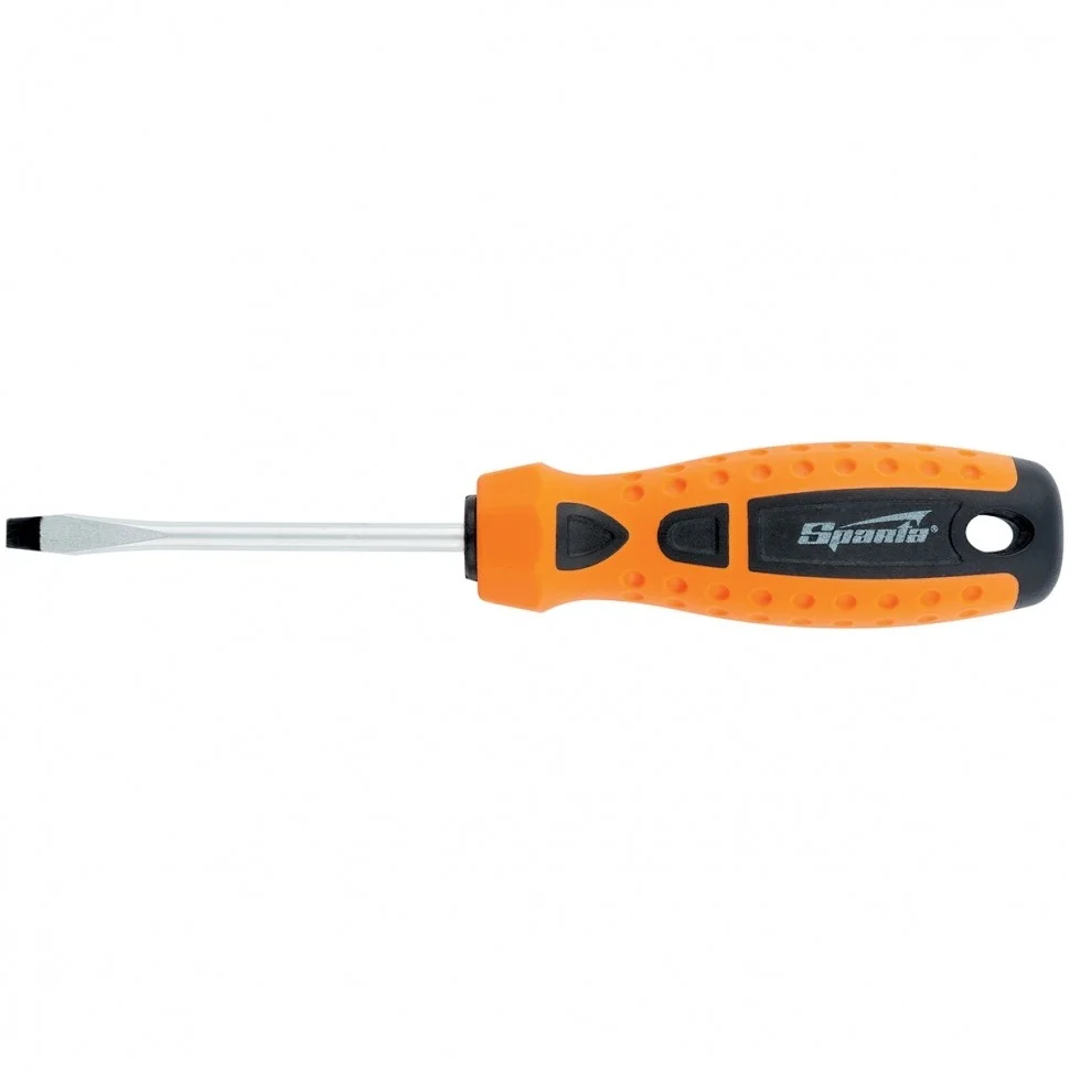 Отвертка Sparta «Point» 11751 из стали CrV, с 2-х компонентной рукояткой, рассчитана на бытовое применение для работ с крепежом типоразмера SL6. Она пригодится мастерам при осуществлении мелких ремонтных работ. Укороченный стержень длиной 38 мм повышает удобство работы в труднодоступных местах, что особенно актуально в автомастерской.ПреимуществаИзносостойкость и долговечность — стержень выполнен из углеродистой стали.Улучшенное сцепление с крепежом — рабочая часть фосфатирована.Удобство работы — на рукоятке имеется маркировка с типом шлица и длины стержня отвертки.Двухкомпонентная эргономичная рукоятка — увеличенная передача крутящего момента позволяет добиться снижения нагрузки на запястье.