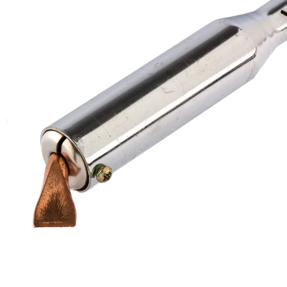 Паяльник электрика Sparta 913104, 100 Вт, 220 В, с ручкой из дерева, применяется для пайки толстых кабелей и крупных деталей. С этими задачами прибор успешно справляется благодаря жалу в форме лопатки. Наконечник съемный, поэтому при необходимости его легко заменить. Нихромовая спираль, являющаяся нагревательным элементом, устойчива к повреждениям, что обеспечивает надежность и долговечность прибора. Паяльник будет полезен для проведения электромонтажных работ.ПреимуществаМедное жало разогревается быстро и чистится легко, поэтому паяльник удобен в использовании.Деревянная рукоятка слабо нагревается и не деформируется, что продлевает срок службы инструмента.Рукоятка из древесины комфортно лежит в руке, поэтому длительное паяние не вызывает дискомфорт.Прибор комплектуется подставкой, на которой его удобно размещать во время работы.