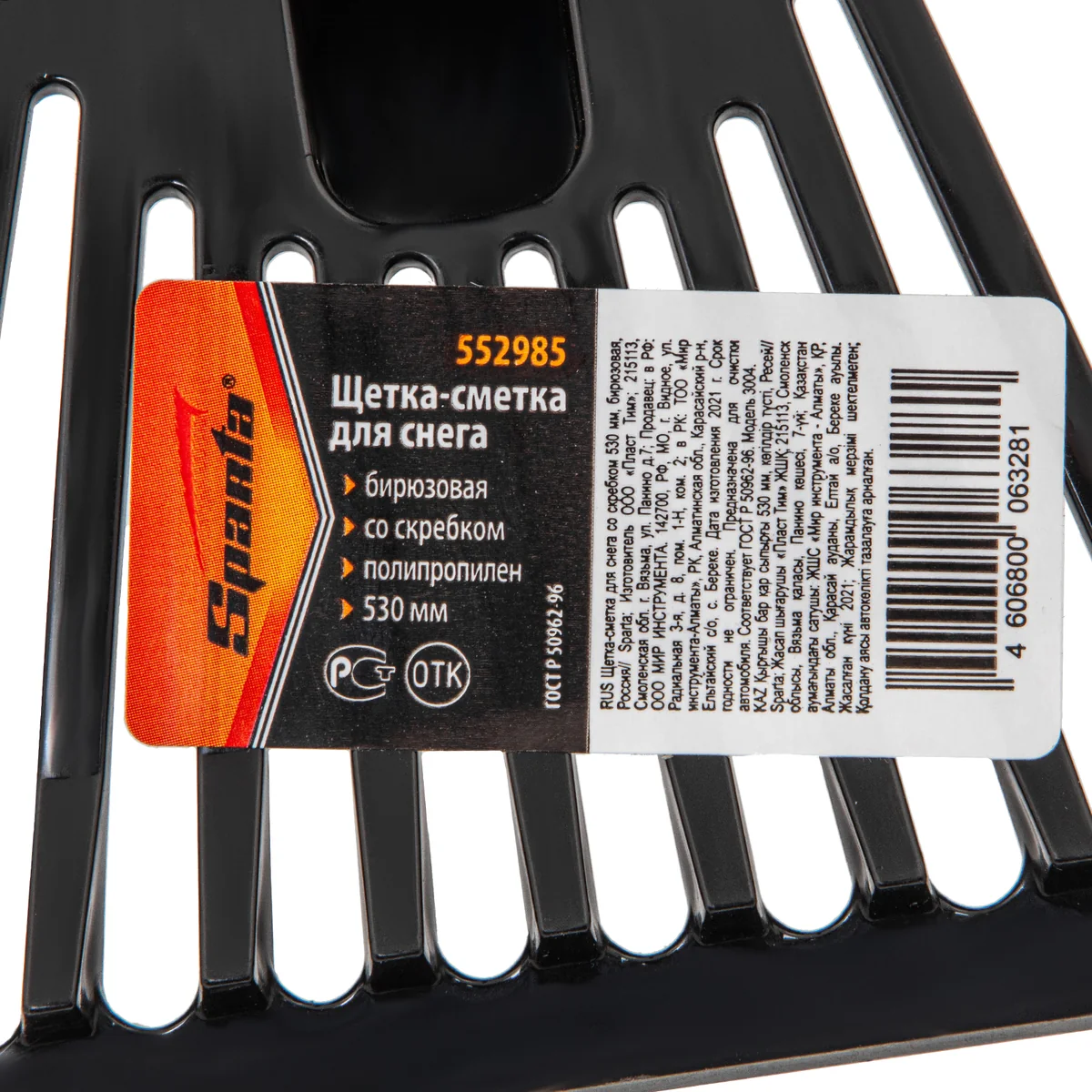 Щетка-сметка для снега со скребком 530 мм, бирюзовая Sparta 552985