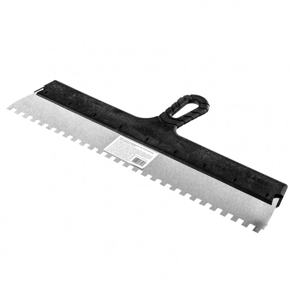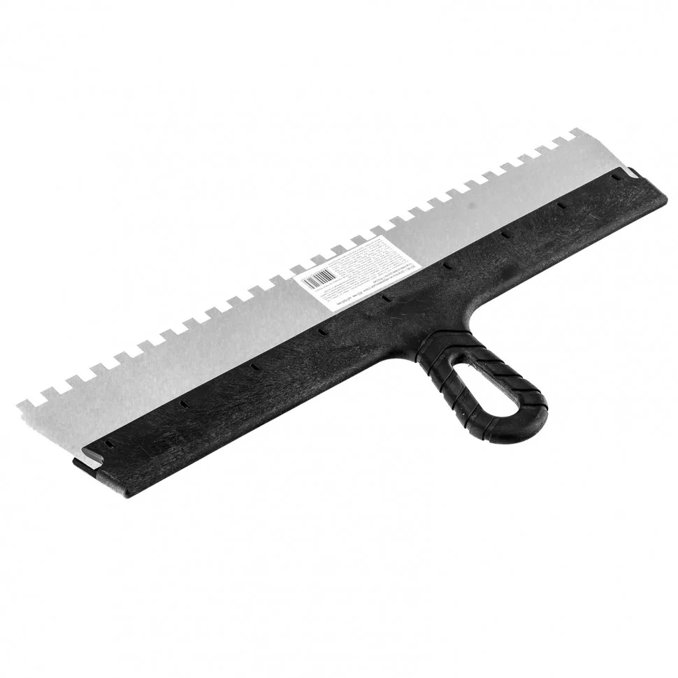 Шпатель Sparta 85146 шириной 450 мм, из нержавеющей стали, с пластмассовой ручкой и зубьями 8 х 8 мм, применяется для равномерного нанесения клея при укладке мелкоформатной плитки, мозаики и т.д. Квадратные зубья облегчают нанесение клеевого состава, позволяя ровно и экономно распределять его по поверхности. Зубья размером 8 х 8 мм рассчитаны на плитку площадью 400-900 см2.ПреимуществаУпругое полотно — при изгибающих нагрузках шпатель быстро восстанавливает свою форму.Коррозионная стойкость — рабочее полотно выполнено из нержавеющей стали.Надежный хват — инструмент имеет эргономичную рельефную ручку.Удобство — рукоятка выполнена с небольшим наклоном для комфортного нанесения и выравнивания растворов.Практичное хранение — в рукоятке предусмотрено отверстие для подвешивания шпателя.