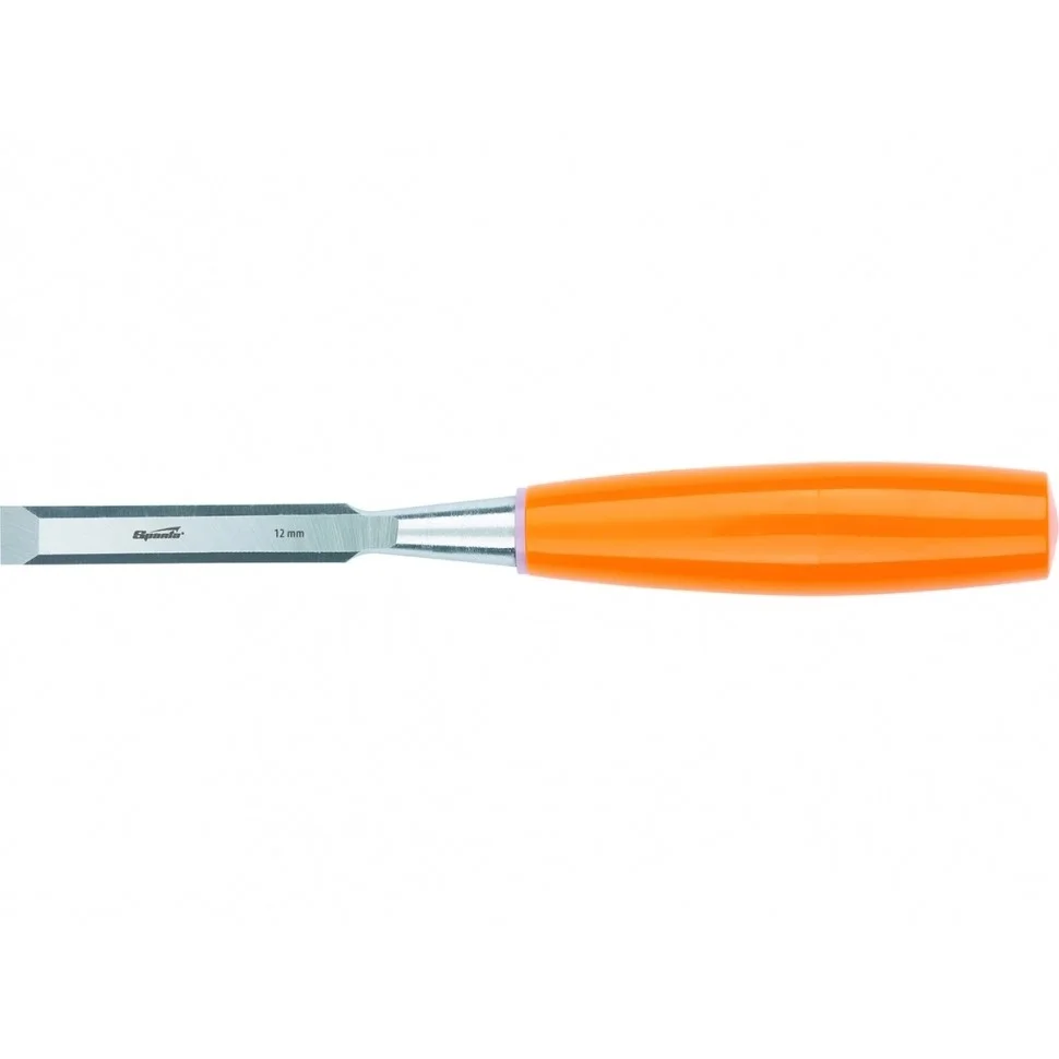 Плоская стамеска Sparta 244155 с шириной лопасти 14 мм и пластиковой рукояткой предназначена для тонких работ по дереву. Она позволяет зачищать пазы и кромки, снимать фаски, вырезать небольшие прямоугольные углубления. Стамеска применяется в столярном деле, мебельном производстве, а также будет полезна в быту.ПреимуществаПолотно выполнено из качественной конструкционной углеродистой стали 55, поэтому обладает высокой прочностью и хорошими режущими свойствами.Твердость стамески составляет 50-55 HRC на длине 2/3 рабочей части полотна, что позволяет режущей кромке долго не тупиться.Благодаря заточке на специальном оборудовании под углом 20-35° обеспечивается высокая острота лезвия и точность работ.Прочную пластмассовую рукоятку удобно держать в руке, поэтому работать со стамеской комфортно.Яркий цвет рукоятки не даст стамеске затеряться в рабочем пространстве.