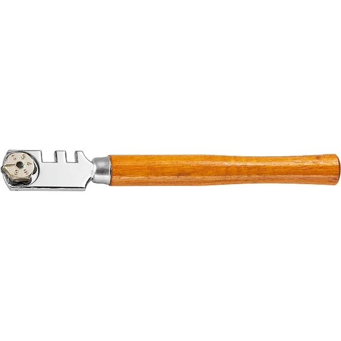 Стеклорез 6-роликовый с деревянной рукояткой Sparta 872235 используется для резки стекла и зеркал толщиной до 6 мм. Имеет 6 режущих элементов, что обеспечивает высокий ресурс работоспособности. В случае износа ролика блок поворачивают, устанавливая в рабочее положение следующий диск. Ролики свободно вращаются на своей оси, поэтому стеклорез прост в использовании. Инструмент применяется для стекольных работ небольшого объема.ПреимуществаРолики изготовлены из твердого сплава марки ВК8 и долго сохраняют режущую способность.Металлическая головка повышает прочность и долговечность конструкции.Пазы шириной 4 и 5 мм облегчают работу, позволяя отламывать узкие кромки стекла.Эргономичная рукоятка стеклореза изготовлена из древесины и удобно лежит в руке, что повышает комфортность работы.Поверхность рукоятки покрыта лаком для защиты от рассыхания.