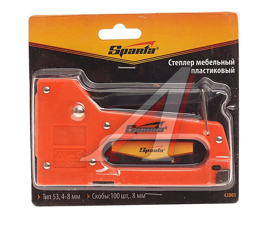 Степлер мебельный Sparta 1-функциональный, выполнен в пластиковым прочном корпусе, для скоб. Используется при обивочных работах мебели и прочих нужд.