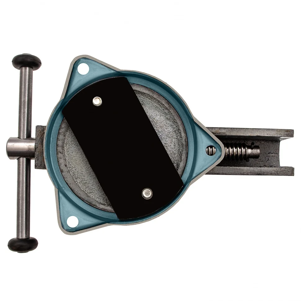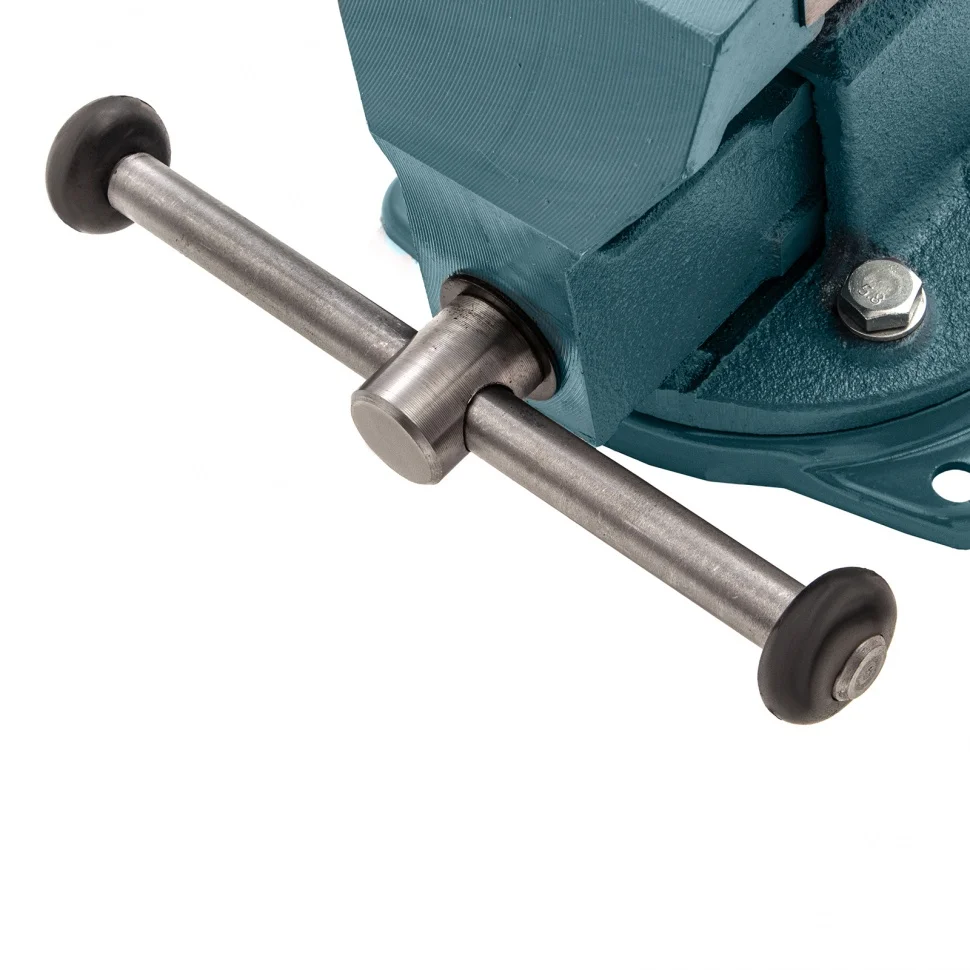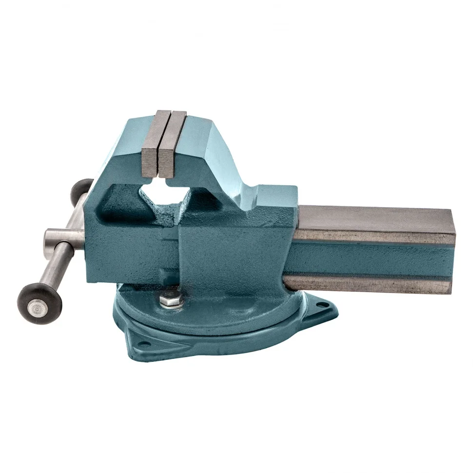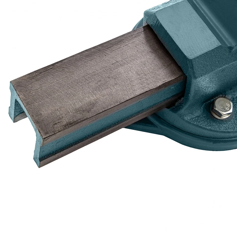 Поворотные слесарные тиски 18663 с губками шириной 100 мм используются для надежной фиксации заготовок. Помогают просверлить отверстия в деталях, выполнить шлифовку и другие столярные и слесарные работы. Тиски с рабочим ходом 140 мм позволяют удерживать крупные заготовки.ПреимуществаВысокий показатель прочности — корпус изготовлен из чугуна ВЧ50, а губки — из стали 50Х.Защита от разрушения — на инструмент нанесено антикоррозийное порошковое покрытие.Рельефная поверхность губок — заготовки надежно фиксируются и не выскальзывают.Поворотная конструкция — удобно обрабатывать детали с разных сторон.Быстрый монтаж — в основании предусмотрены отверстия для крепления к верстаку.