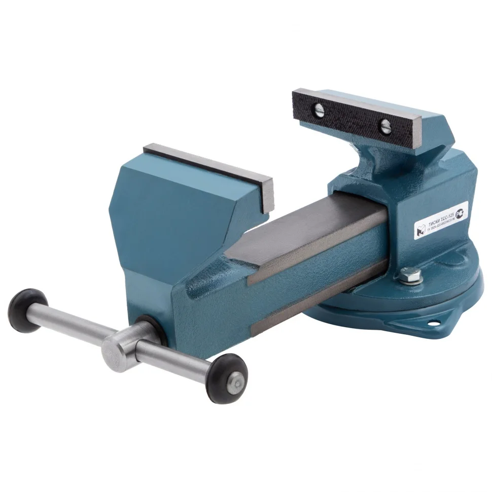 Поворотные слесарные тиски 18665 с губками шириной 125 мм используются для надежной фиксации заготовок. Помогают просверлить отверстия в деталях, выполнить шлифовку и другие столярные и слесарные работы. Тиски с рабочим ходом 160 мм позволяют удерживать крупные заготовки.ПреимуществаВысокий показатель прочности — корпус изготовлен из чугуна ВЧ50, а губки — из стали 50Х.Защита от разрушения — на инструмент нанесено антикоррозийное порошковое покрытие.Рельефная поверхность губок — заготовки надежно фиксируются и не выскальзывают.Поворотная конструкция — удобно обрабатывать детали с разных сторон.Быстрый монтаж — в основании предусмотрены отверстия для крепления к верстаку.