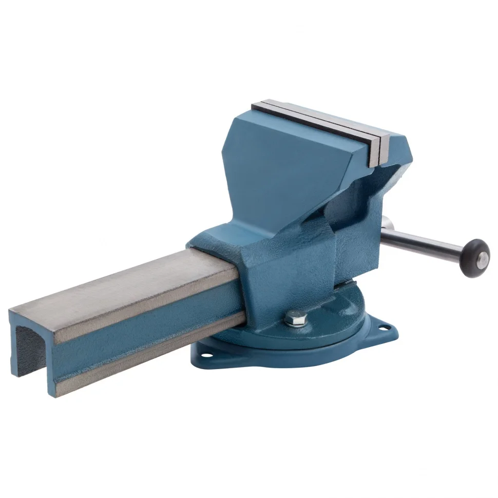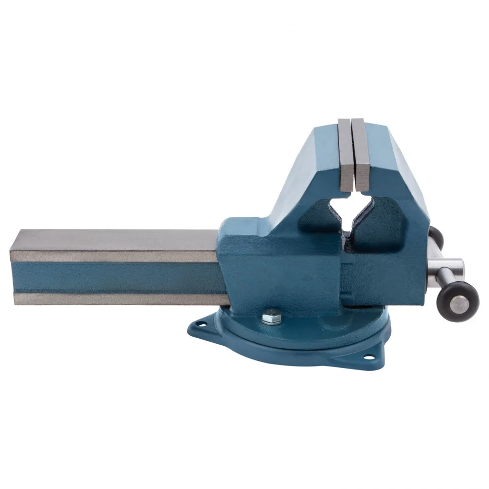 Поворотные слесарные тиски 18667 с губками шириной 140 мм используются для надежной фиксации заготовок. Помогают просверлить отверстия в деталях, выполнить шлифовку и другие столярные и слесарные работы. Тиски с рабочим ходом 180 мм позволяют удерживать крупные заготовки.ПреимуществаВысокий показатель прочности — корпус изготовлен из чугуна ВЧ50, а губки — из стали 50Х.Защита от разрушения — на инструмент нанесено антикоррозийное порошковое покрытие.Рельефная поверхность губок — заготовки надежно фиксируются и не выскальзывают.Поворотная конструкция — удобно обрабатывать детали с разных сторон.Быстрый монтаж — в основании предусмотрены отверстия для крепления к верстаку.