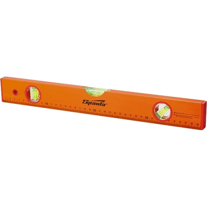 Алюминиевый уровень Sparta 330325 длиной 1200 мм, желтого цвета, с 3 глазками и линейкой, необходим в ходе проведения строительных, отделочных, облицовочных и других работ, где требуется особая точность. Уровень с тремя глазками поможет измерить горизонтальную и вертикальную плоскости, выставить угол 45 градусов, выровнять предметы и т.д.Для определения отклонения вертикали 90 градусов необходимо использовать пузырьковую ампулу только в верхнем положении уровня. Только базовая поверхность является рабочей (противоположная ампуле 180 градусов).ПреимуществаАлюминиевый профиль, из которого выполнен уровень, гарантирует его надежность.С обеих сторон уровня установлены заглушки, предотвращающие попадание пыли и строительного мусора в корпус.Линейка поможет начертить линию нужной длины или провести измерения.Точность проводимых замеров составляет 1 мм/м (0,057 градуса).