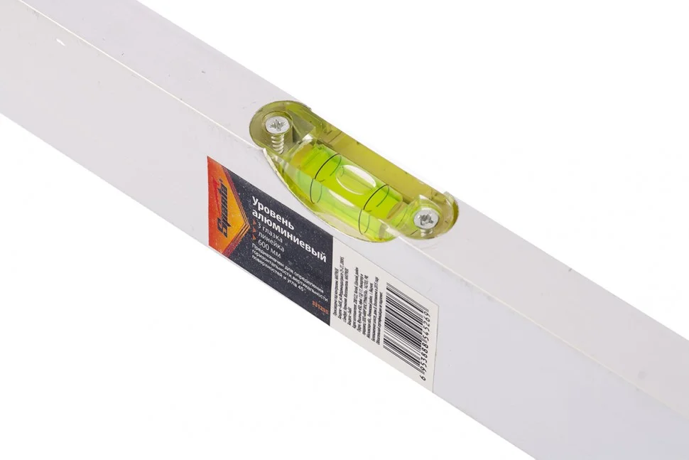 Алюминиевый уровень Sparta 331235 длиной 600 мм, с 3 глазками и линейкой, — незаменимый инструмент, используемый при строительных, облицовочных, отделочных и других работах. Уровень с 3 глазками повышает точность поставленных задач, позволяя измерить горизонтальную и вертикальную плоскости, угол наклона и выровнять поверхности и предметы.Для определения отклонения вертикали 90 градусов необходимо использовать пузырьковую ампулу только в верхнем положении уровня. Только базовая поверхность является рабочей (противоположная ампуле 180 градусов).ПреимуществаДолговечность уровня обеспечивает алюминиевый профиль с анодированным покрытием.По бокам корпуса имеются заглушки, которые не допускают попадания пыли и мелкого строительного мусора.С помощью линейки можно замерить габариты объектов.Погрешность замеров составляет всего 1 мм на каждый метр (0,057 градуса).