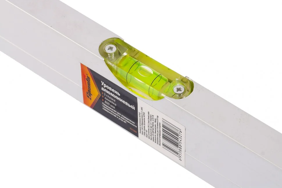 Алюминиевый уровень Sparta 331265 длиной 800 мм, с 3 глазками и линейкой, — незаменимый инструмент, используемый при строительных, облицовочных, отделочных и других работах. Уровень с 3 глазками повышает точность поставленных задач, позволяя измерить горизонтальную и вертикальную плоскости, угол наклона и выровнять поверхности и предметы.Для определения отклонения вертикали 90 градусов необходимо использовать пузырьковую ампулу только в верхнем положении уровня. Только базовая поверхность является рабочей (противоположная ампуле 180 градусов).ПреимуществаДолговечность уровня обеспечивает алюминиевый профиль с анодированным покрытием.По бокам корпуса имеются заглушки, которые не допускают попадания пыли и мелкого строительного мусора.С помощью линейки можно замерить габариты объектов.Погрешность замеров составляет всего 1 мм на каждый метр (0,057 градуса).