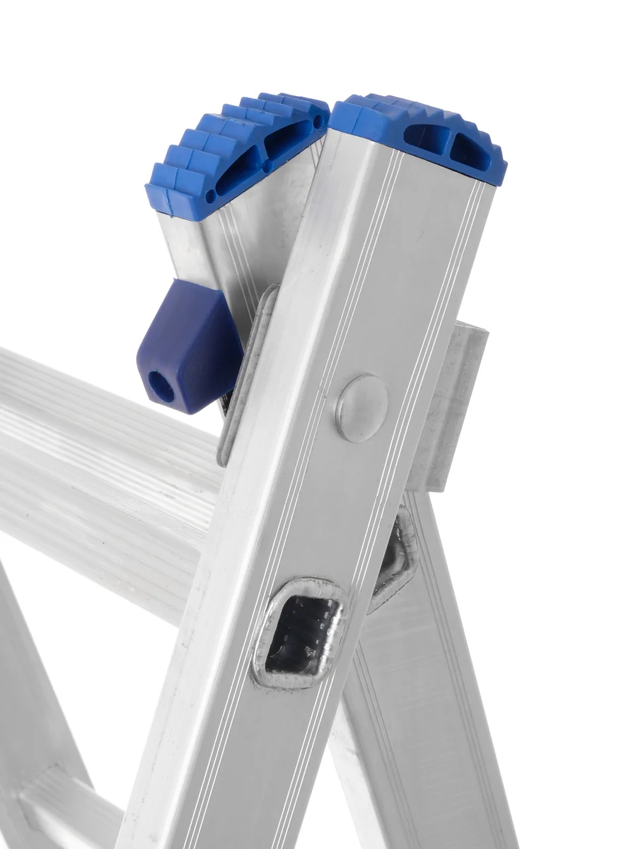 Лестница из двух секций многофункциональна. Лестницу можно использовать в качестве стремянки и раздвижной лестницы. Алюминиевый сплав делает лестницу легкой, но при этом прочной за счет увеличенной износостойкости материала. Алюминий не подвержен коррозии, что позволяет использовать лестницу как в помещении, так и на открытом пространстве.