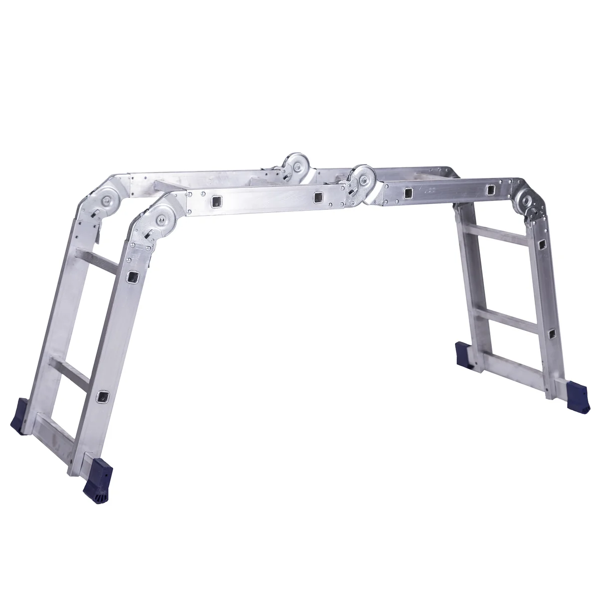 Лестница-трансформер универсальная и заменяет несколько разных изделий. Лестница легко превращается в двухстороннюю стремянку, приставную лестницу или лестницу с консолью. В положении помост запрещено использование без твёрдого, жёсткого настила на рабочей площадке.Алюминиевый сплав делает лестницу легкой, но при этом прочной за счет увеличенной изностойкости материала. Алюминий не подвержен коррозии, что позволяет использовать лестницу как в помещении, так и на открытом пространстве.