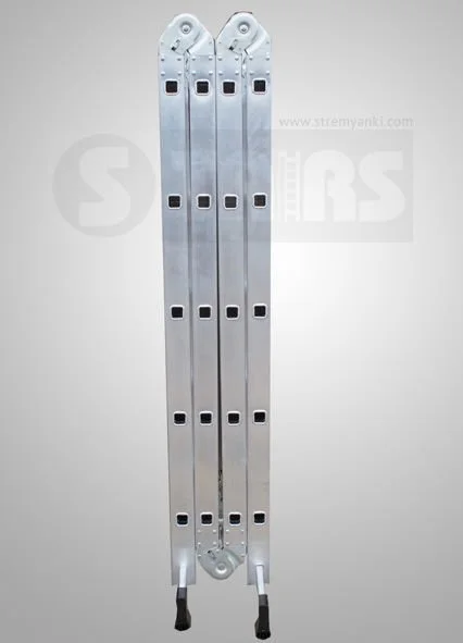 Шарнирные соединения превращают лестницу трансформер в двухстороннюю стремянку, помост или лестницу с консолью (упор в стену, напоминающий букве "Г"). Лестницы-трансформеры отлично зарекомендовали себя при проведении строительных работ (монтажных, отделочных и т.п.) в различных условиях. Так же её удобно использовать на складах, благодаря небольшим габаритам. Компактная конструкция лестниц-трансформеров не требует много места, они легко складываются гармошкой, и могут поместиться в багажнике автомобиля или в шкафу. Рекомендуемая нагрузка 150 кг