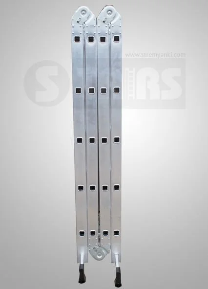 Шарнирные соединения превращают лестницу трансформер в двухстороннюю стремянку, помост или лестницу с консолью (упор в стену, напоминающий букве "Г"). Лестницы-трансформеры отлично зарекомендовали себя при проведении строительных работ (монтажных, отделочных и т.п.) в различных условиях. Так же её удобно использовать на складах, благодаря небольшим габаритам. Компактная конструкция лестниц-трансформеров не требует много места, они легко складываются гармошкой, и могут поместиться в багажнике автомобиля или в шкафу. Рекомендуемая нагрузка 150 кг