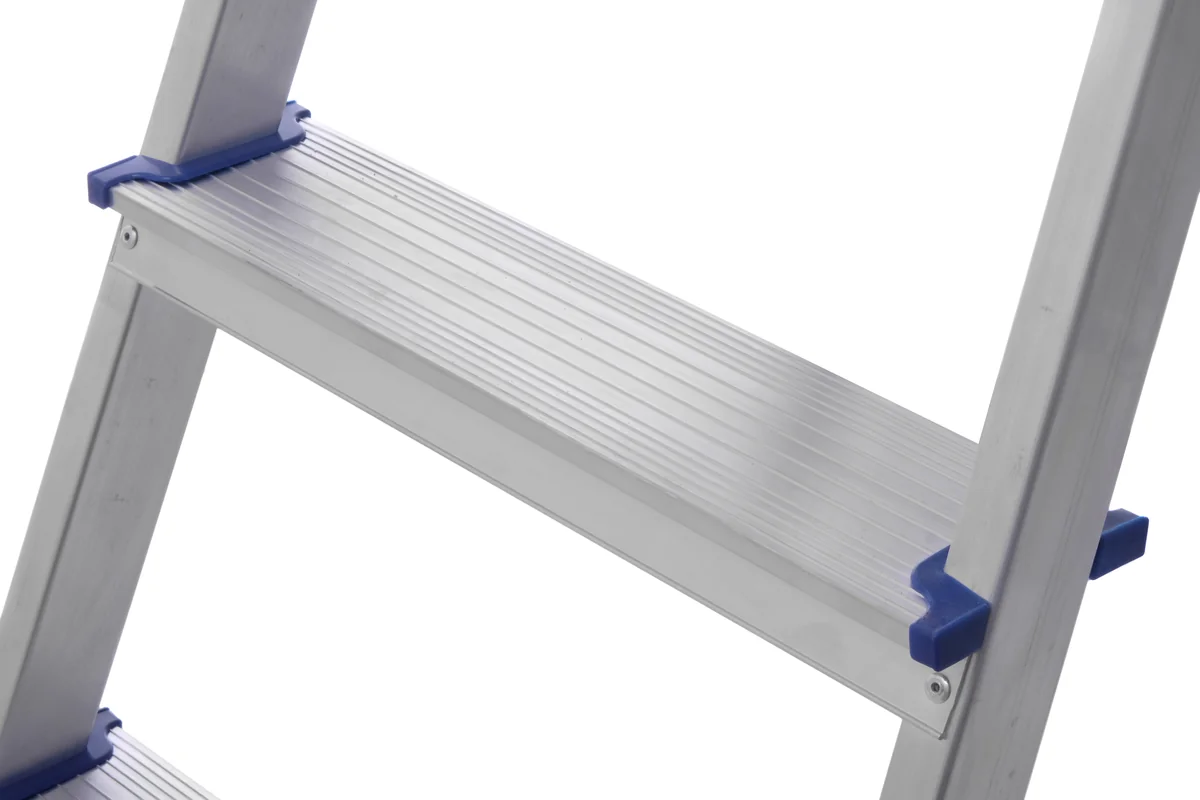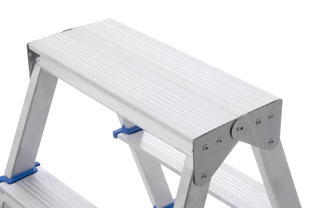 Двухсторонняя стремянка функциональна, ее можно использовать с обеих сторон, благодаря чему не требуется часто перемещать. Конструкция стабильная и устойчивая, компактно складывается для удобного хранения и транспортировки. Алюминиевый сплав делает стремянку легкой, но при этом прочной за счет увеличенной износостойкости материала. Алюминий не подвержен коррозии, что обеспечивает длительную эксплуатацию.
