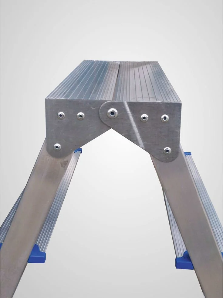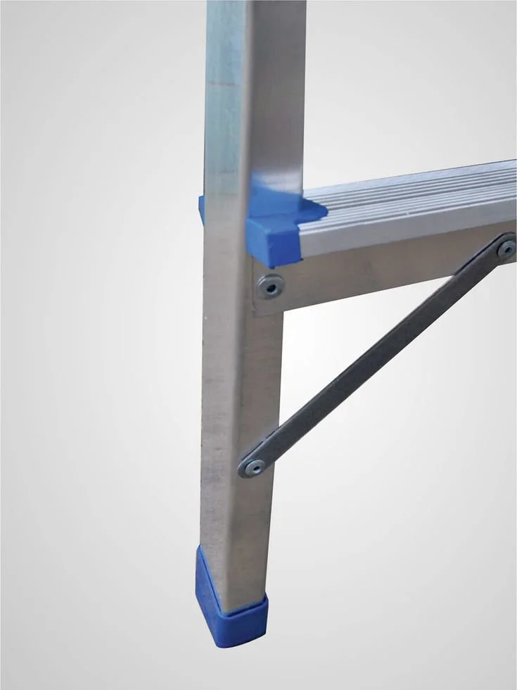 Стремянка алюминиевая двухсторонняя (ступени расположены с двух сторон) позволяет увеличить рабочую зону без перестановки стремянки. Двухсторонняя алюминиевая стремянка - идеальный вариант для работ дома, недаром, основным потребителем такого вида стремянок является прекрасная половина.