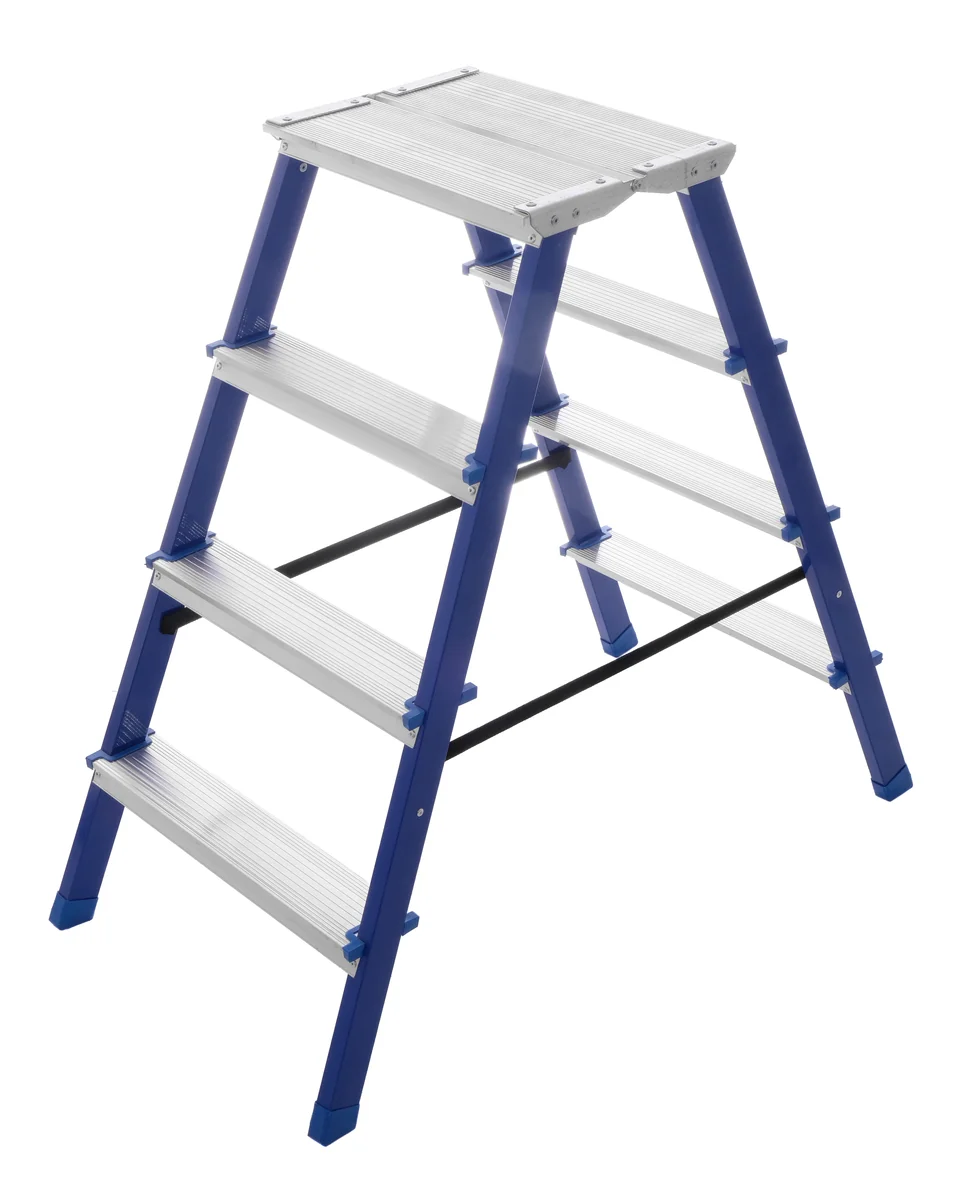 Двухсторонняя стремянка с мини-платформой обладает всеми преимуществами двухсторонней стремянки, отличается просторной рабочей площадкой из двух широких ступеней 130 мм для более комфортной работы.Каркас изготовлен из стали, которая обеспечивает надежность, прочность и усиливает устойчивость конструкции. Сталь покрыта порошковой краской, которая защищает изделие от коррозии.