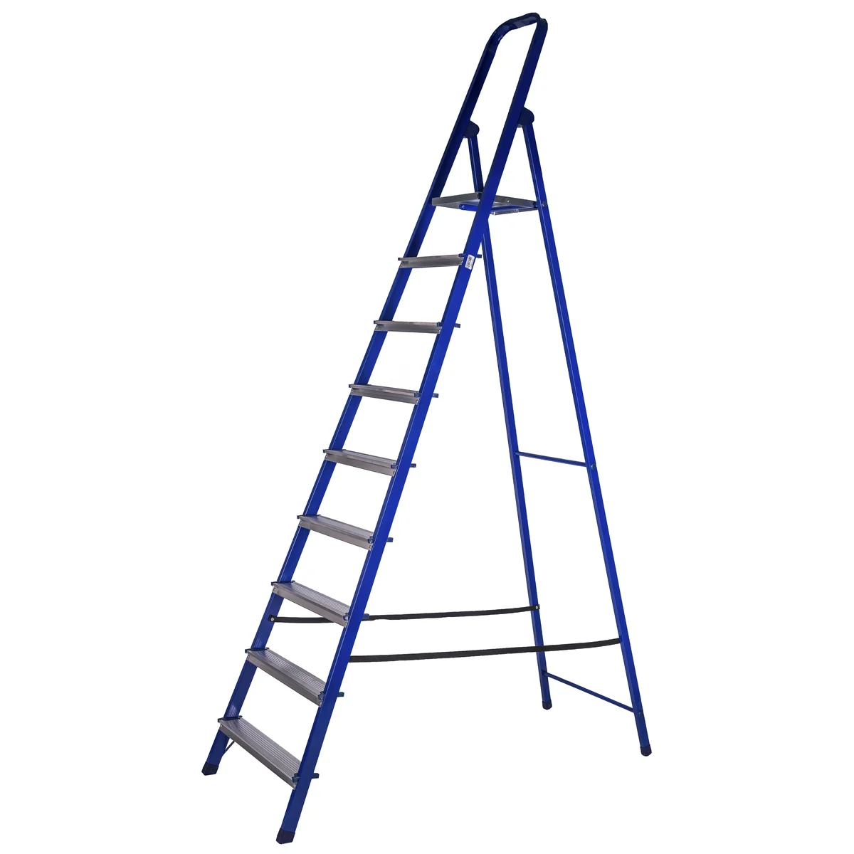 Односторонняя стремянка универсальная и простая в использовании, подойдет для бытовых задач и для ремонта. Стремянки производятся от 2 до 10 ступеней, включая площадку, что позволяет подобрать оптимальную высоту для работы. Каркас изготовлен из стали, которая обеспечивает надежность, прочность и усиливает устойчивость конструкции. Сталь покрыта порошковой краской, которая защищает изделие от коррозии.