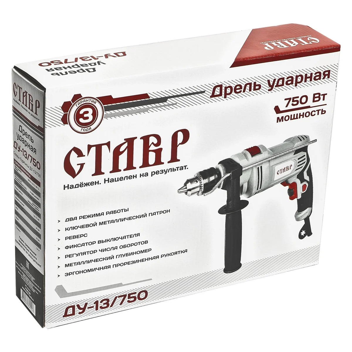 Потребляемая мощность, Вт 750 Напряжение сети / Частота, В/Гц 220В±10% / 50 Режим работы сверление/сверление с ударом Число оборотов на холостом ходу, об/мин 0-2800 Частота ударов, кол-во/мин 0-44800 Патрон ключевой Диаметр зажима, мм 1,5-13 Максимальный диаметр сверления дерева, мм 34 Максимальный диаметр сверления металла, мм 14 Длина сетевого кабеля, м 3 Габаритные размеры упаковки, см 32,5х7,5х25 Максимальный диаметр сверления кирпича, мм 15 Масса, кг 2,6 Масса с упаковкой, кг 2,8 Комплект поставки дополнительная съемная рукоятка, глубиномер,ключ патрона, угольные щетки (запасной комплект)