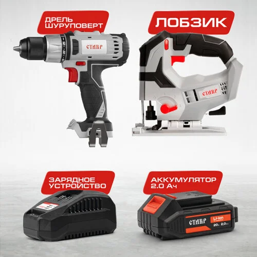Комплект из 4 товаров: СТАВР ДА-20 + СТАВР ЛА-80/20 + аккумулятор СТАВР АКБ-20/2 + зарядное устройст