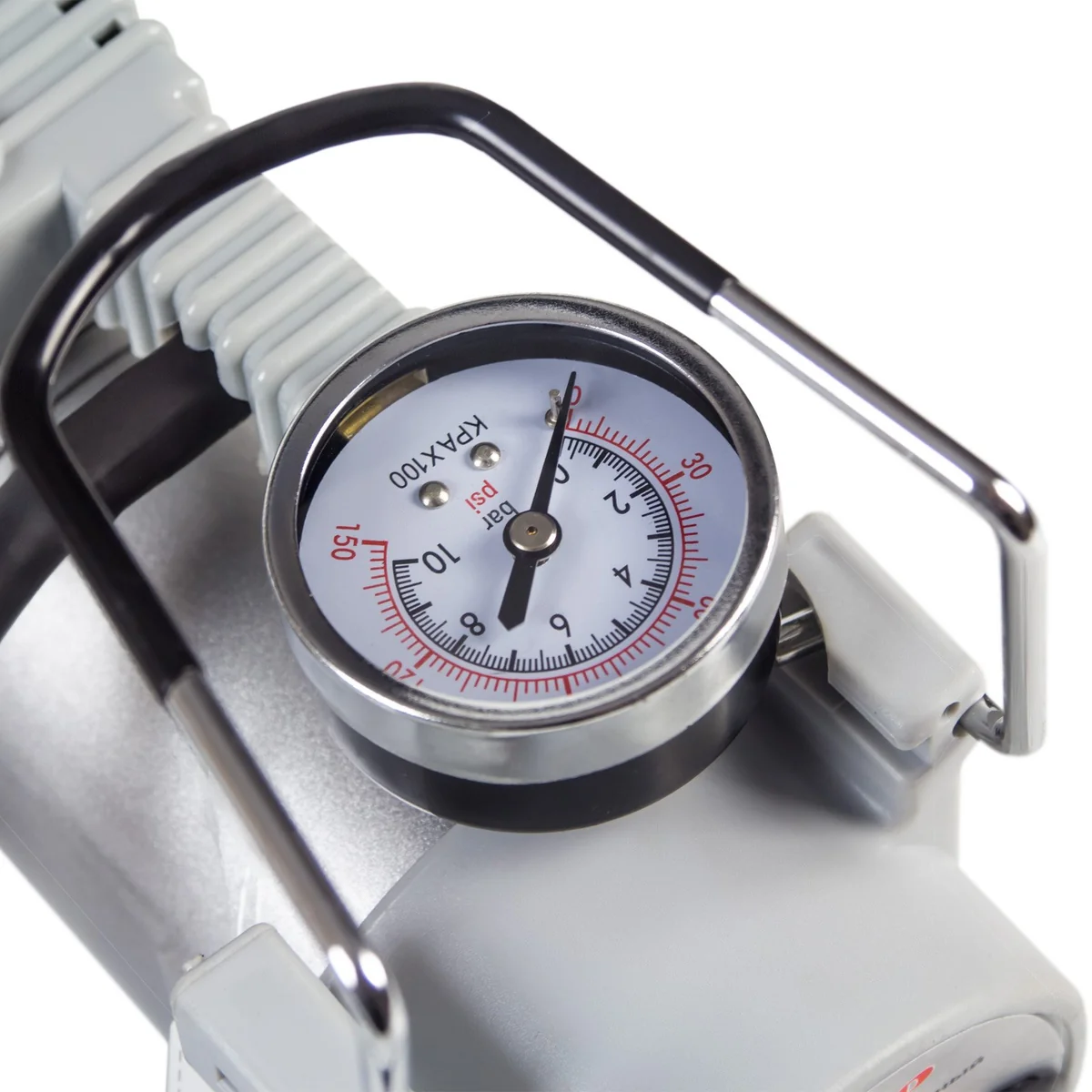 - ВИЗУАЛЬНЫЙ КОНТРОЛЬ: На верхней части корпуса расположен манометр, позволяющий контролировать работу компрессора.