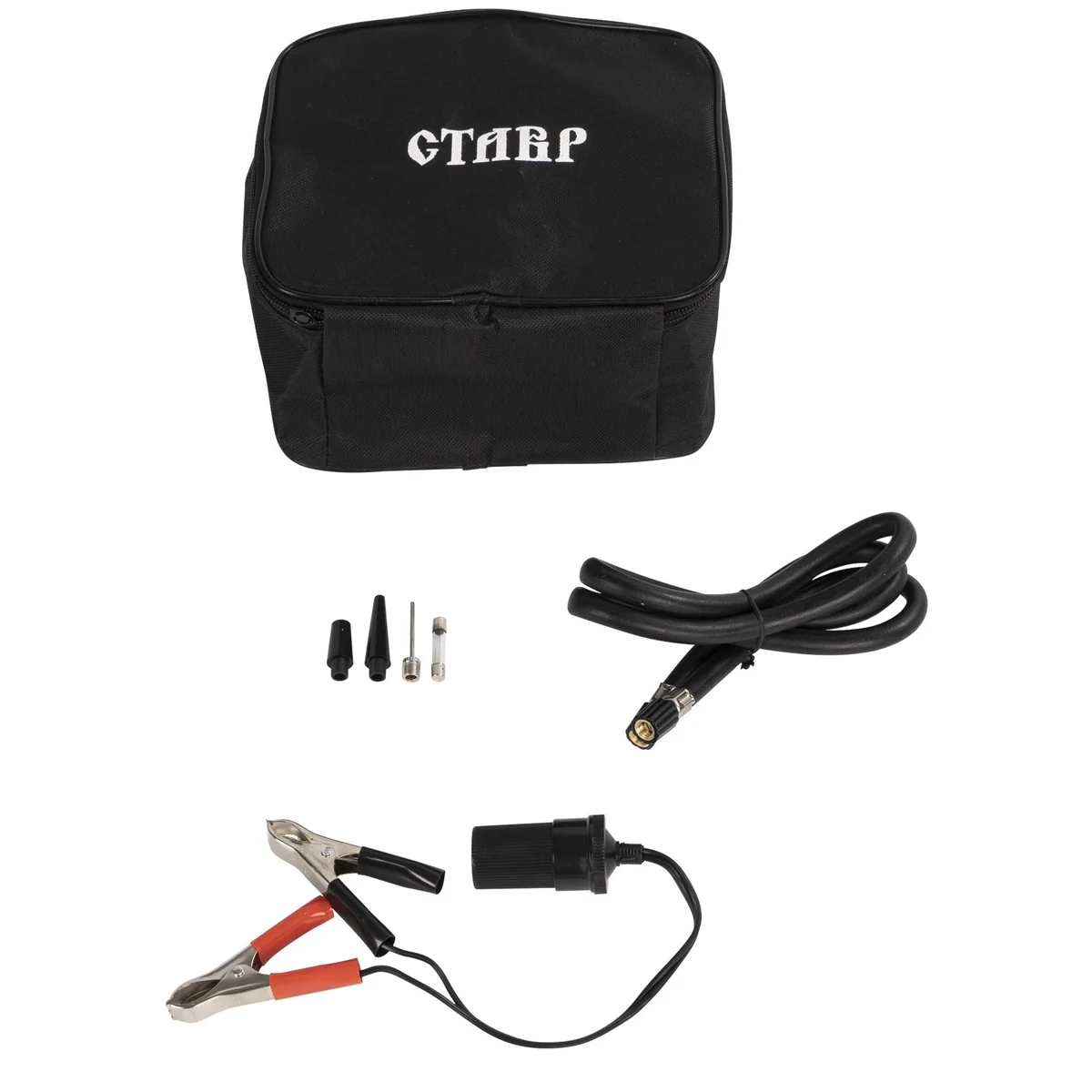 - КОМПЛЕКТАЦИЯ - Воздушный шланг, насадка (3 шт.), переходник для подключения к аккумулятору, сумка.