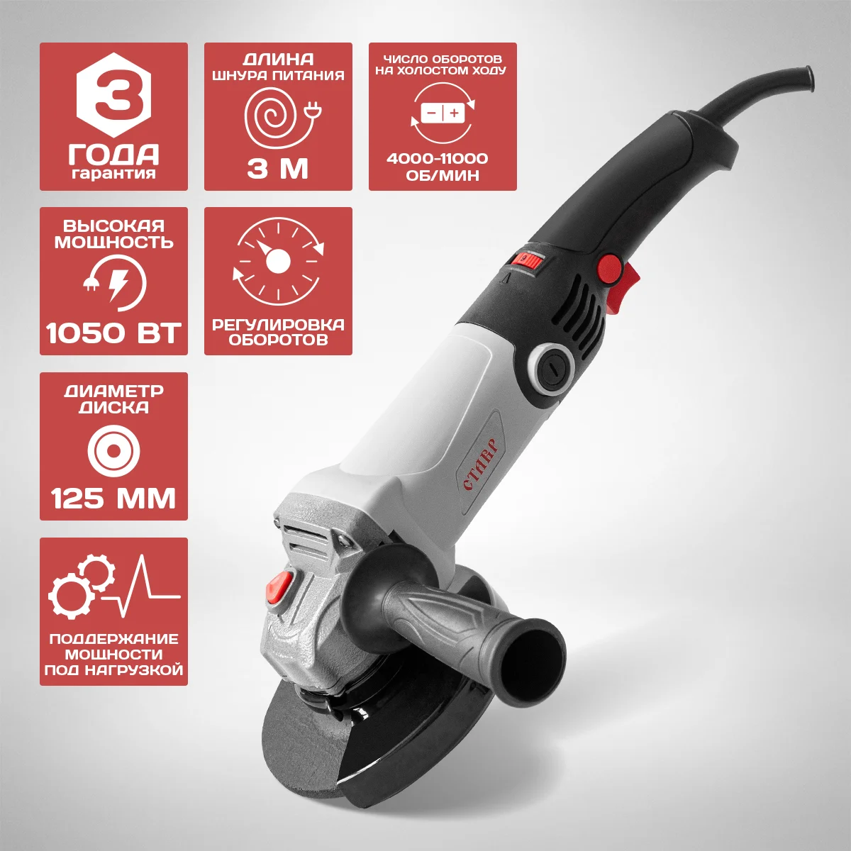 - ВЫСОКАЯ МОЩНОСТЬ 1050 ВТ: Мощный электромотор с надежной защитой обеспечивает высокую производительность и долгий срок службы инструмента.