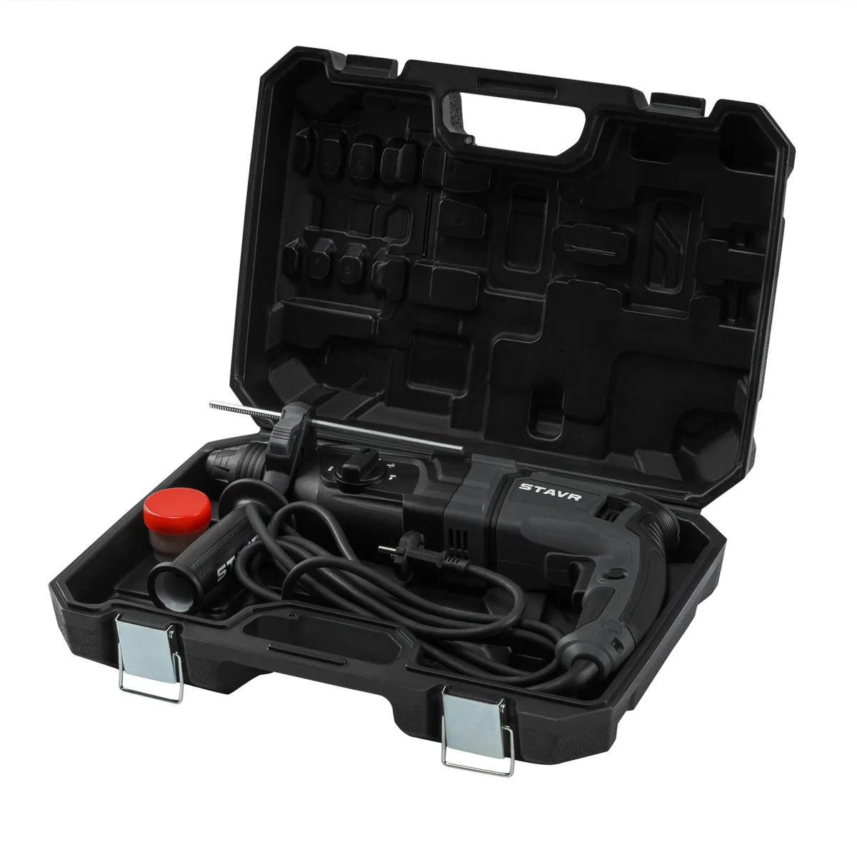 КОМПЛЕКТАЦИЯ: перфоратор, смазка для буров, кейс, руководство по эксплуатации.