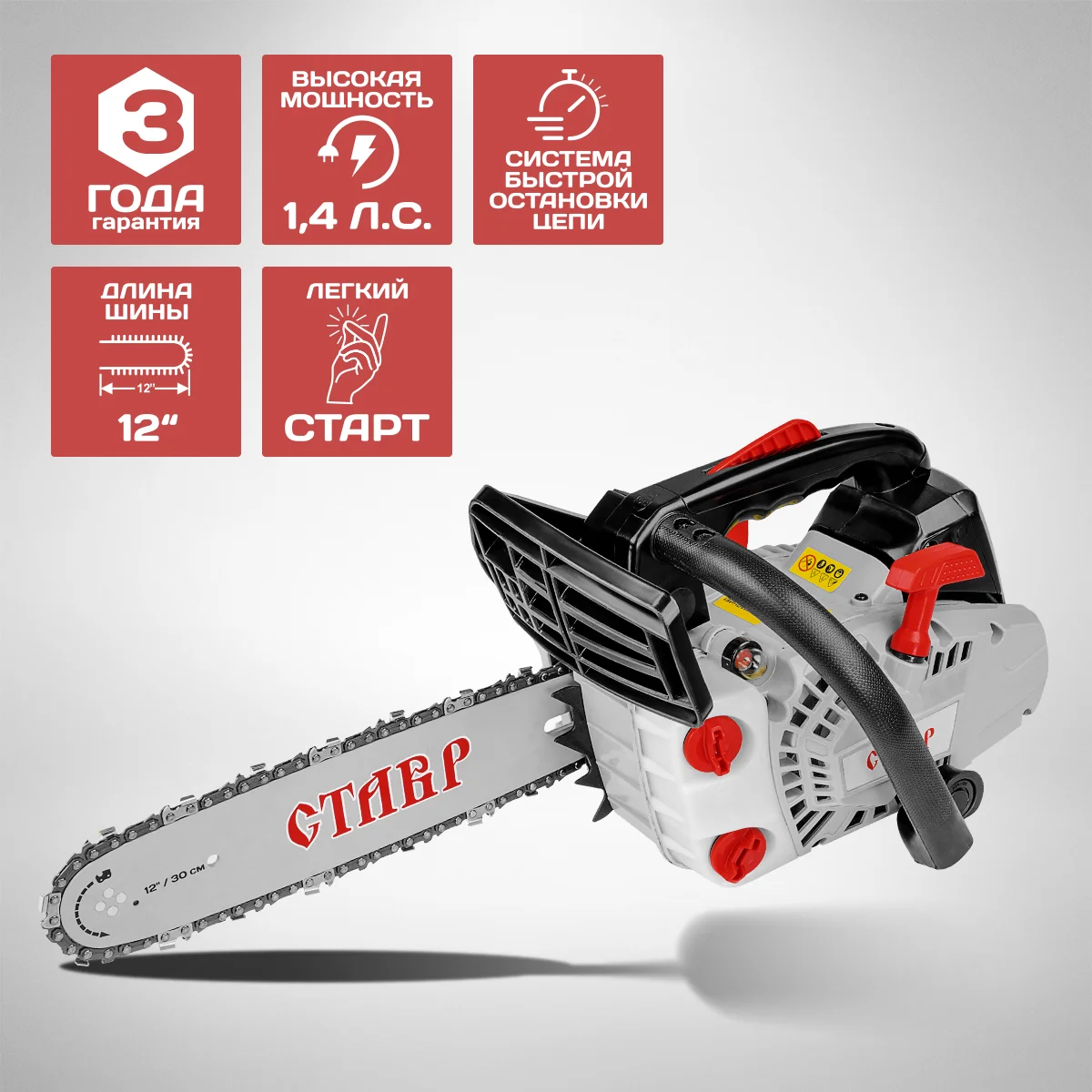 - Длина шины: 30 см (12”)