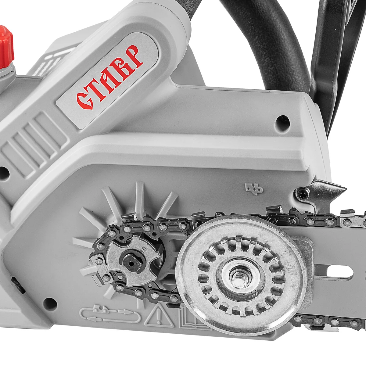 - СИСТЕМА БЫСТРОЙ ОСТАНОВКИ ЦЕПИ: Останавливает цепь за 0,12 с при касании рычага тормоза.