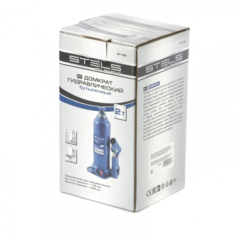 Домкрат гидравлический бутылочный, 2 т, h подъема 178-338 мм Stels 51160