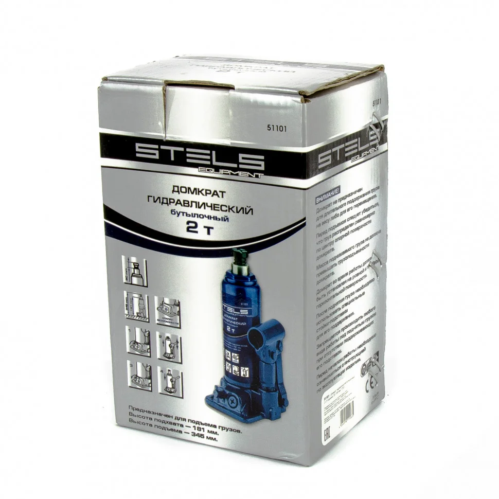 Домкрат гидравлический бутылочный, 2 т, H подъема 181-345 мм Stels 51101