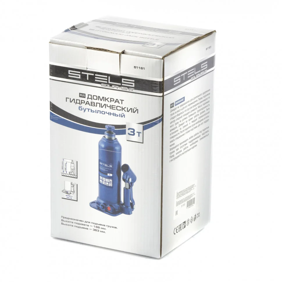 Домкрат гидравлический бутылочный, 3 т, h подъема 188-363 мм Stels 51161