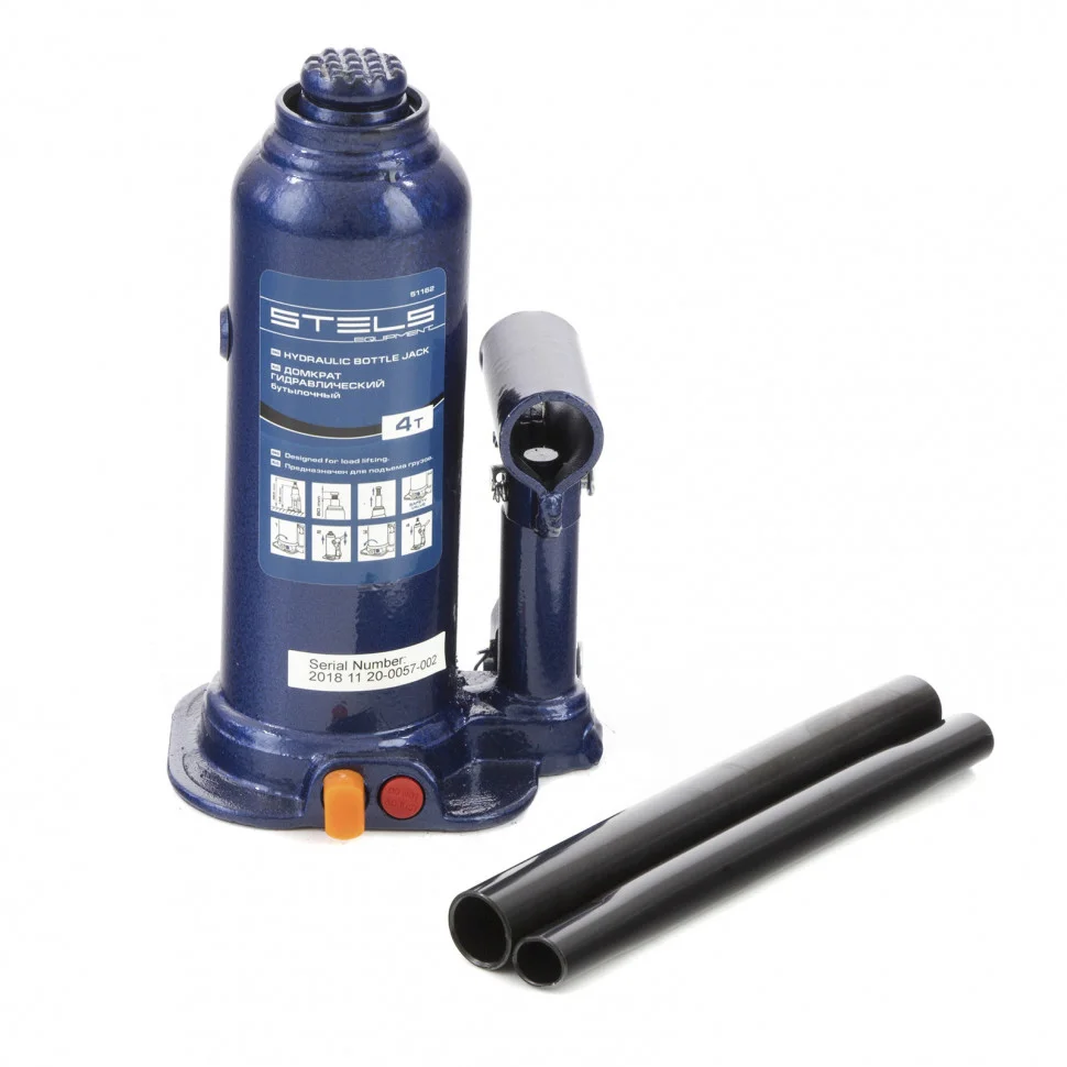 Гидравлический бутылочный домкрат Stels 51162 применяется для быстрого поднятия грузов весом до 4 т на высоту до 363 мм. Он оптимален для авто с большим клиренсом, т.к. минимальная высота подхвата составляет 188 мм. Домкрат будет полезен автолюбителям и профессионалам при проведении ремонта авто.ПреимуществаДомкрат не поднимает грузы тяжелее 4 тонн, т.к. оснащен клапаном безопасности.Коррозионностойкая сталь повышенной прочности гарантирует надежность и долговечность корпуса.Домкрат не имеет резьбовых соединений, ослабляющих его конструкцию, т.к. корпус приварен к станине.