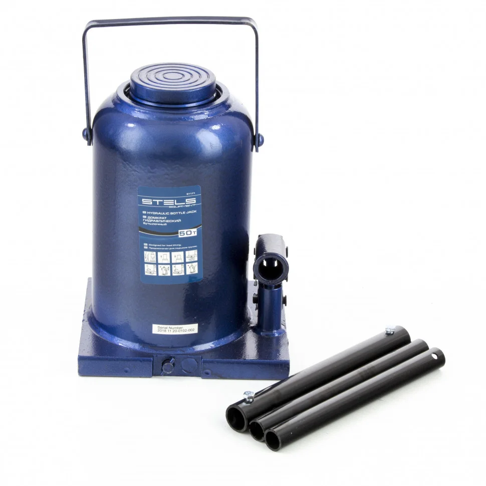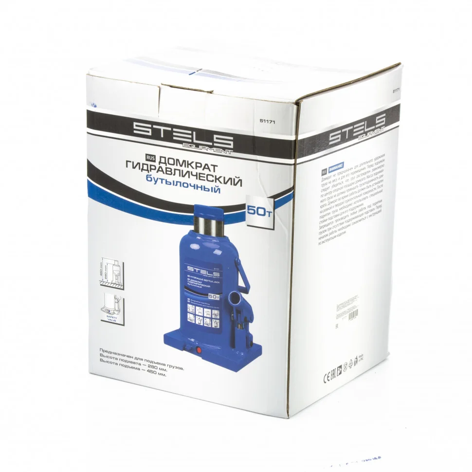 Гидравлический бутылочный домкрат Stels 51171 применяется для быстрого поднятия грузов весом до 50 т на высоту до 450 мм. Он оптимален для авто с большим клиренсом, т.к. минимальная высота подхвата составляет 280 мм. Домкрат будет полезен автолюбителям и профессионалам при проведении ремонта авто.ПреимуществаДомкрат не поднимает грузы тяжелее 50 тонн, т.к. оснащен клапаном безопасности.Коррозионностойкая сталь повышенной прочности гарантирует надежность и долговечность корпуса.Домкрат не имеет резьбовых соединений, ослабляющих его конструкцию, т.к. корпус приварен к станине.