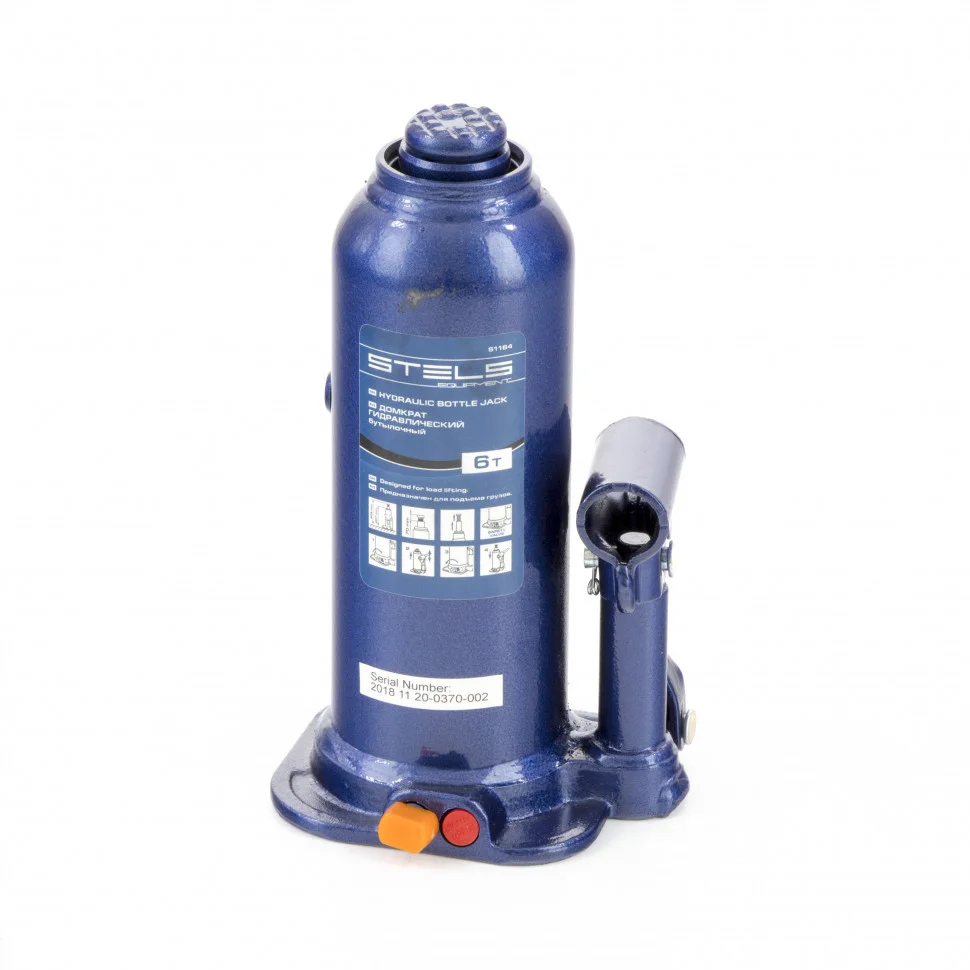 Гидравлический бутылочный домкрат Stels 51164 применяется для быстрого поднятия грузов весом до 6 т на высоту до 404 мм. Он оптимален для авто с большим клиренсом, т.к. минимальная высота подхвата составляет 207 мм. Домкрат будет полезен автолюбителям и профессионалам при проведении ремонта авто.ПреимуществаДомкрат не поднимает грузы тяжелее 6 тонн, т.к. оснащен клапаном безопасности.Коррозионностойкая сталь повышенной прочности гарантирует надежность и долговечность корпуса.Домкрат не имеет резьбовых соединений, ослабляющих его конструкцию, т.к. корпус приварен к станине.
