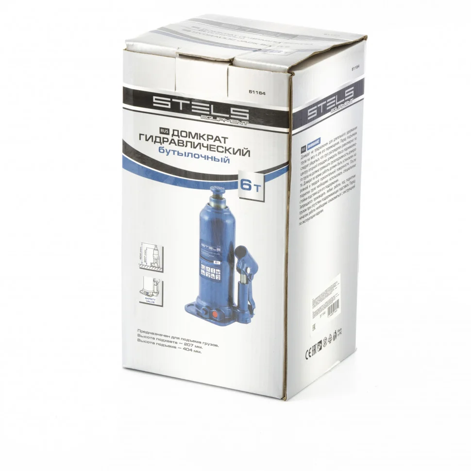 Домкрат гидравлический бутылочный, 6 т, h подъема 207-404 мм Stels 51164