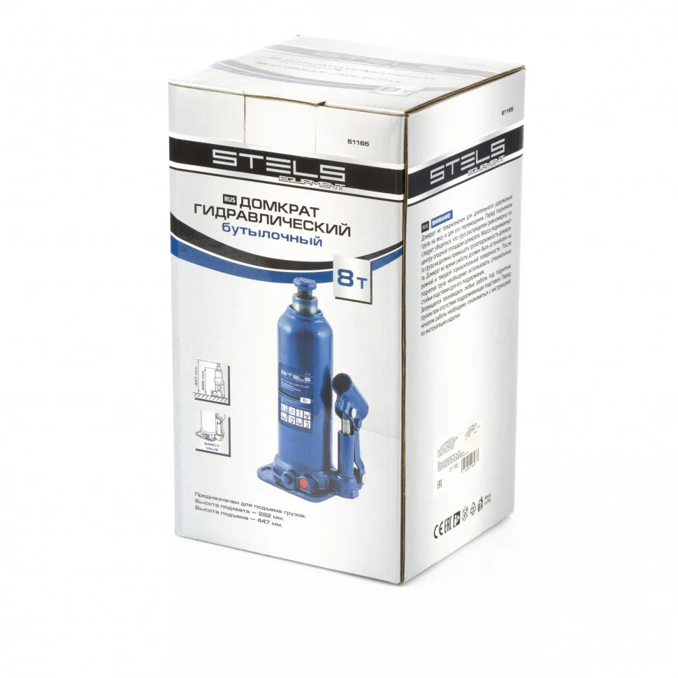 Домкрат гидравлический бутылочный, 8 т, h подъема 222-447 мм Stels 51165