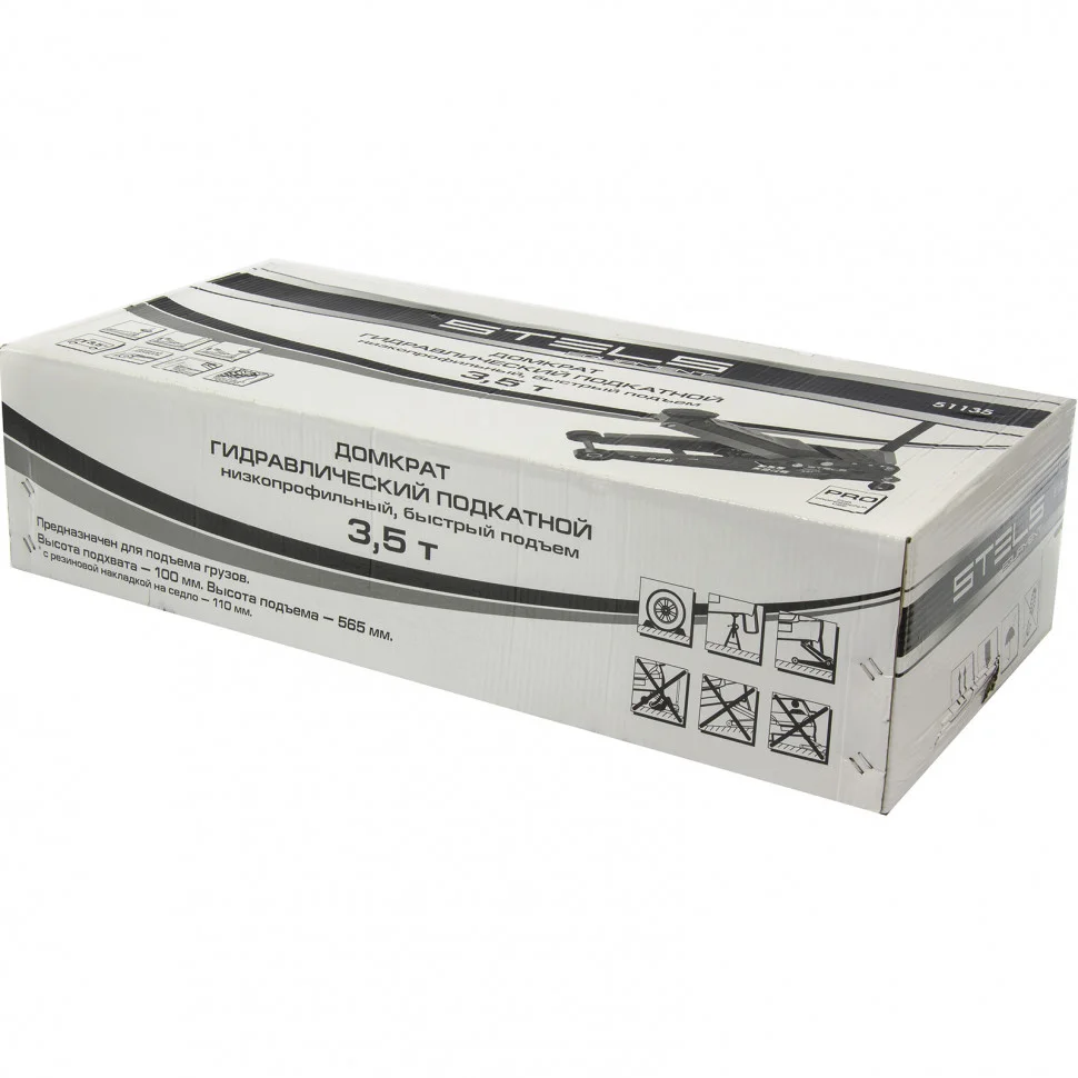 Профессиональный подкатной гидравлический домкрат Stels LOW PROFILE QUICK LIFT 51135 используется для быстрого подъема на высоту 100-565 мм всех типов автомобилей с низким клиренсом и массой до 3,5 тонн. Благодаря системе QUICK LIFT для достижения предельной высоты достаточно 10 качков рукоятки. Домкрат подходит для использования на станциях техобслуживания и шиномонтажа.ПреимуществаРезиновая опора защищает груз и сам домкрат от повреждений.Карданная передача обеспечивает надежность и долговечность оборудования.Защитный клапан предохраняет домкрат от перегрузки при попытках поднять автомобиль тяжелее 3,5 тонн.Двухплунжерный насос сохраняет работоспособность даже при выходе из строя одного из плунжеров — домкрат будет работать за счет второго.Хромированные штоки и резиновые сальники обеспечивают износостойкость оборудования.Благодаря лотку для мелких деталей болты и гайки не потеряются.Ручка домкрата прорезинена, поэтому не повредит корпус автомобиля.Масленка для смазывания оси лапы позволяет продлить срок службы домкрата.