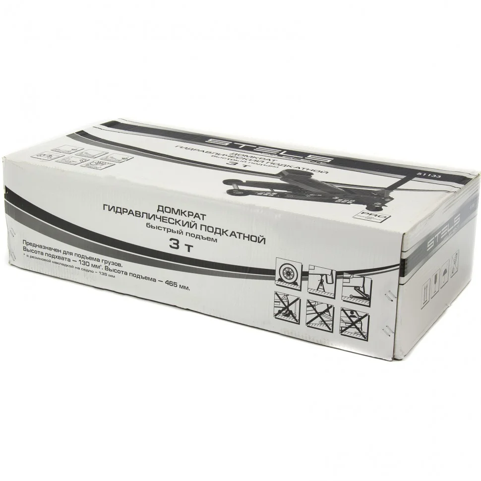 Профессиональный подкатной гидравлический домкрат Stels QUICK LIFT 51133 используется для быстрого подъема на высоту 130-465 мм всех типов автомобилей со стандартным клиренсом и массой до 3 тонн. Благодаря системе QUICK LIFT для достижения предельной высоты достаточно 7 качков рукоятки. Домкрат подходит для использования на станциях техобслуживания и шиномонтажа.