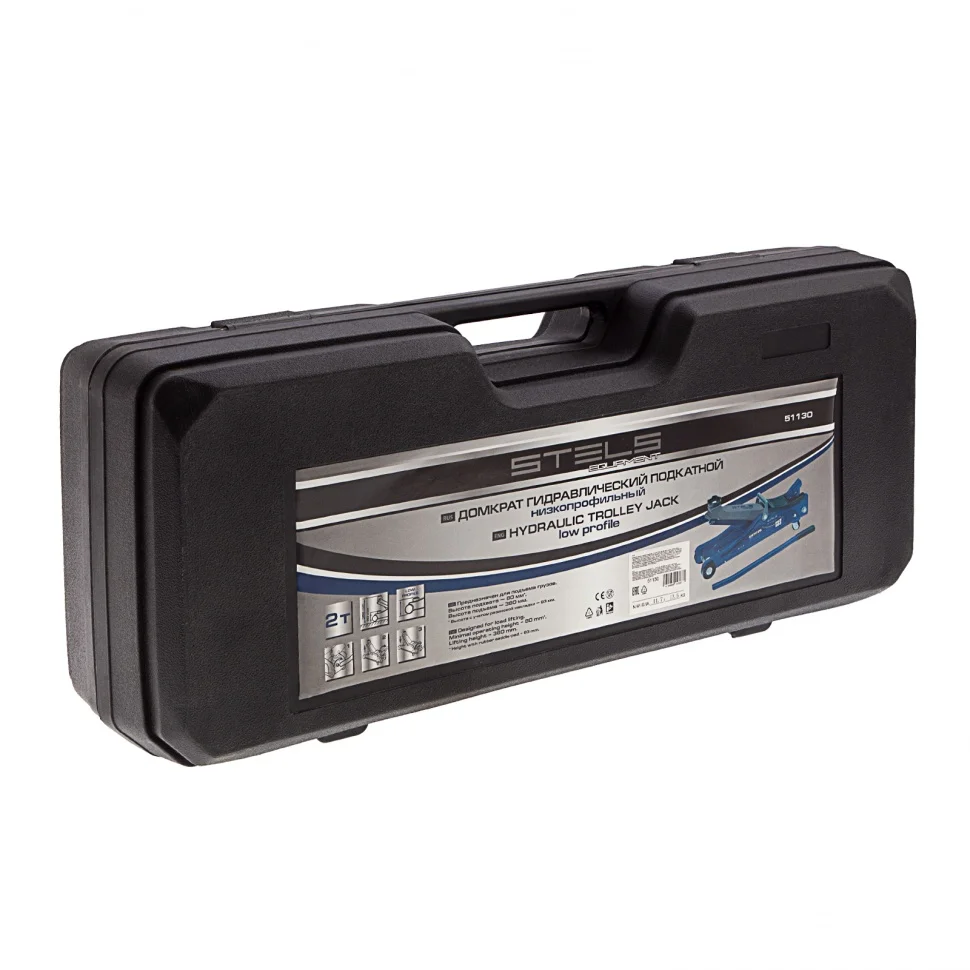 Гидравлический подкатной домкрат Stels Low Profile 51130, 80-380 мм, предназначен для подъема грузов массой до 2 т. Применяется для обслуживания автотранспорта. Поднимает груз на высоту до 380 мм и имеет сверхнизкий профиль с высотой подхвата 80 мм, поэтому подходит для автомобилей с небольшим клиренсом. Домкрат компактен и может использоваться автовладельцами самостоятельно. Поставляется в пластиковом кейсе, поэтому удобен для хранения и перевозки.ПреимуществаУсиленная конструкция обеспечивает надежность оборудования.Для защиты от повреждений вследствие перегрузок предусмотрен клапан сброса избыточного давления.Маневренность домкрата позволяет быстро подвести его под груз.Резиновая опора защищает автомобиль и корпус домкрата от механических повреждений.Благодаря небольшим габаритам 566 х 206 х 130 домкрат можно разместить в багажнике автомобиля.