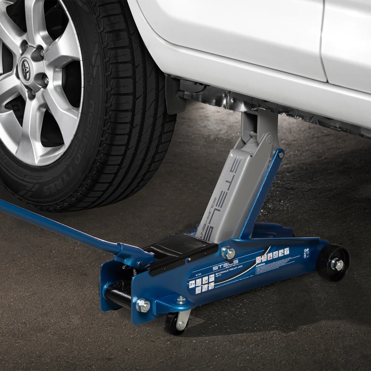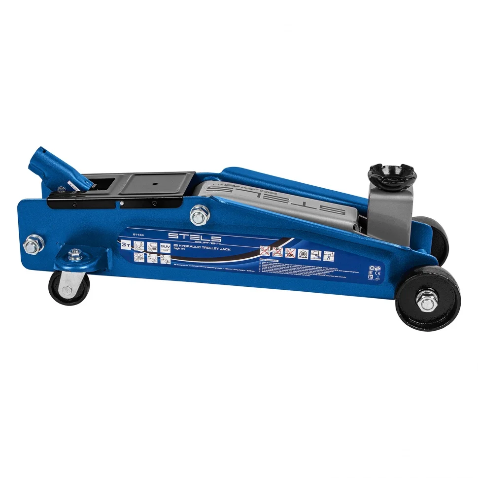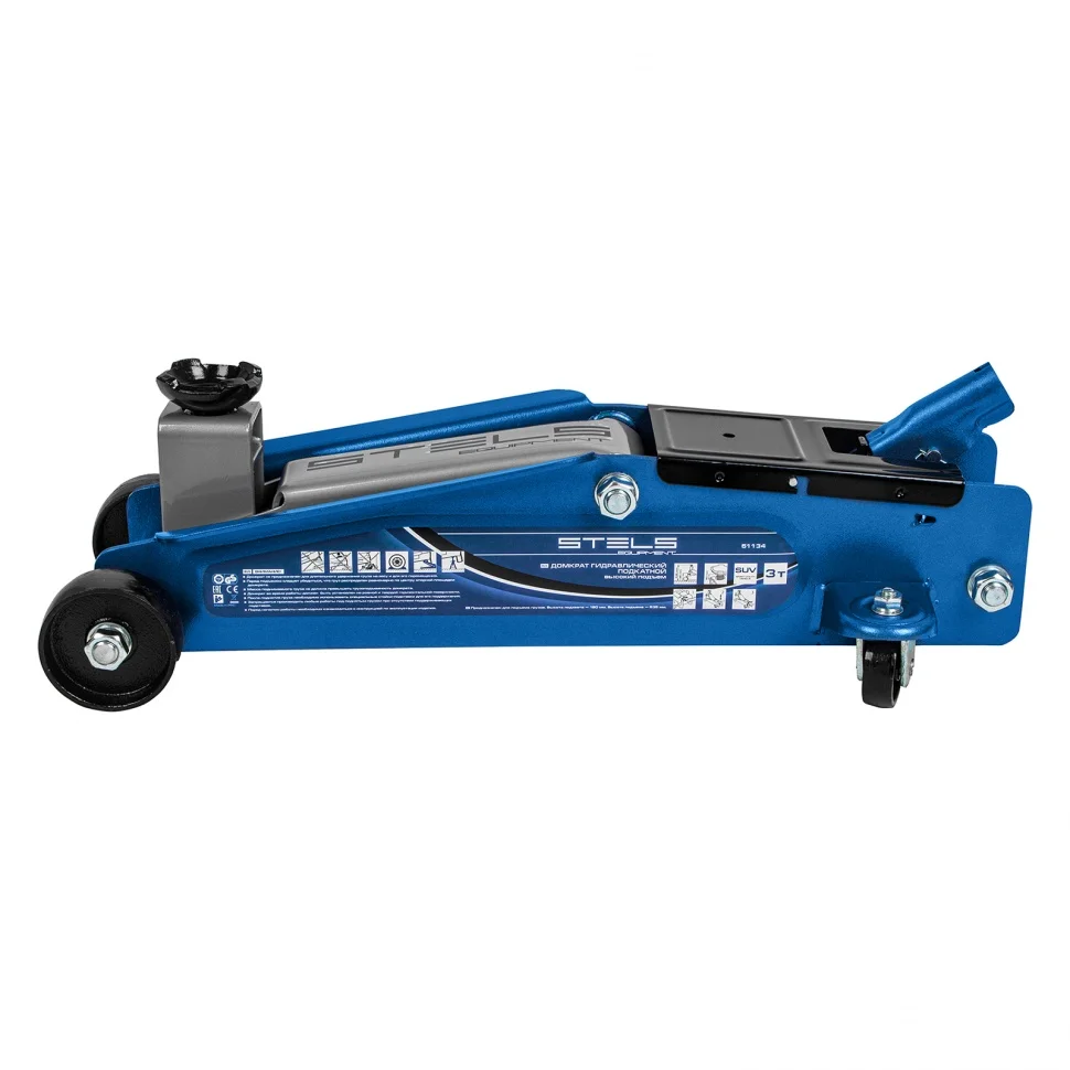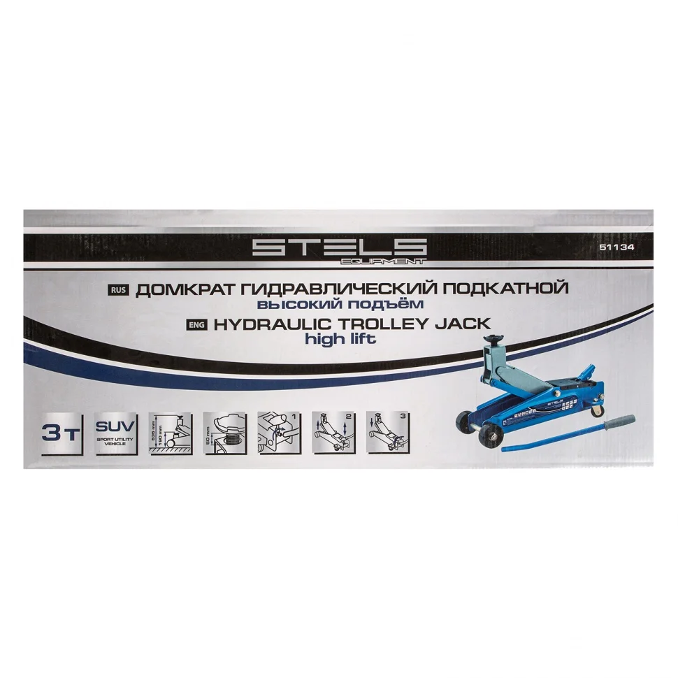 Подкатной гидравлический домкрат Stels SUV 51134 с высоким подъемом позволяет поднимать грузы весом до 3 т на высоту 535 мм. За счет высокого подхвата 190 мм используется для обслуживания автомашин с увеличенным дорожным просветом. Домкрат подходит для самостоятельного обслуживания авто.ПреимуществаПоложение опорной площадки регулируется в пределах 50 мм, за счет чего можно установить точную высоту подъема автомобиля.Защитный клапан предотвращает перегрузку и разрушение домкрата в случае превышения максимально возможной грузоподъемности.Толстая рифленая рукоятка рабочей ручки не скользит в ладони, что обеспечивает комфортность эксплуатацииРезиновая накладка на опору помогает лучше зафиксировать груз и предохраняет его от повреждений.