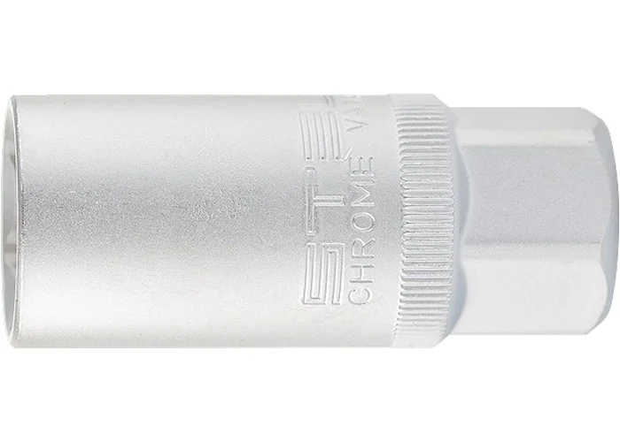Торцевая 12-гранная свечная головка Stels 13637 размером 21 мм, под квадрат 1/2 дюйма, используется для монтажа и демонтажа свечей зажигания в авто. Резиновая вставка внутри профиля позволяет удерживать свечу при демонтаже, облегчая ее извлечение из корпуса двигателя.ПреимуществаПрочность и долговечность — торцевая головка сделана из высококачественной стали хромованадиевой группы.Износостойкость — твердость рабочей части составляет 40 HRC, поэтому торцевая головка выдерживает высокие нагрузки.Защита от разрушения — на головку нанесено матовое хромовое покрытие для предотвращения коррозии.Комфортная работа — на корпусе имеются антискользящие насечки.