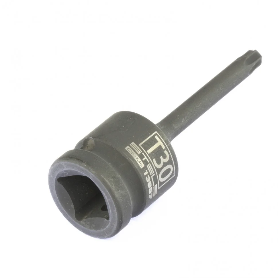 Ударная головка TORX 30 Stels 13957 с посадочным квадратом 1/2 дюйма применяется для монтажа и демонтажа крепежных элементов с помощью пневматического или электрического гайковерта. Отличается высокой прочностью и способностью выдерживать динамические нагрузки, поэтому подходит для профессионального использования на станциях техобслуживания.ПреимуществаВысокий ресурс — головка из хромомолибденовой стали, закаленная до твердости 44-48 HRC, устойчива к износу и деформациям.Защита от коррозии — фосфатное матовое покрытие предотвращает разрушение головки под воздействием влаги.Удобная работа в труднодоступных местах — длина головки составляет 78 мм.