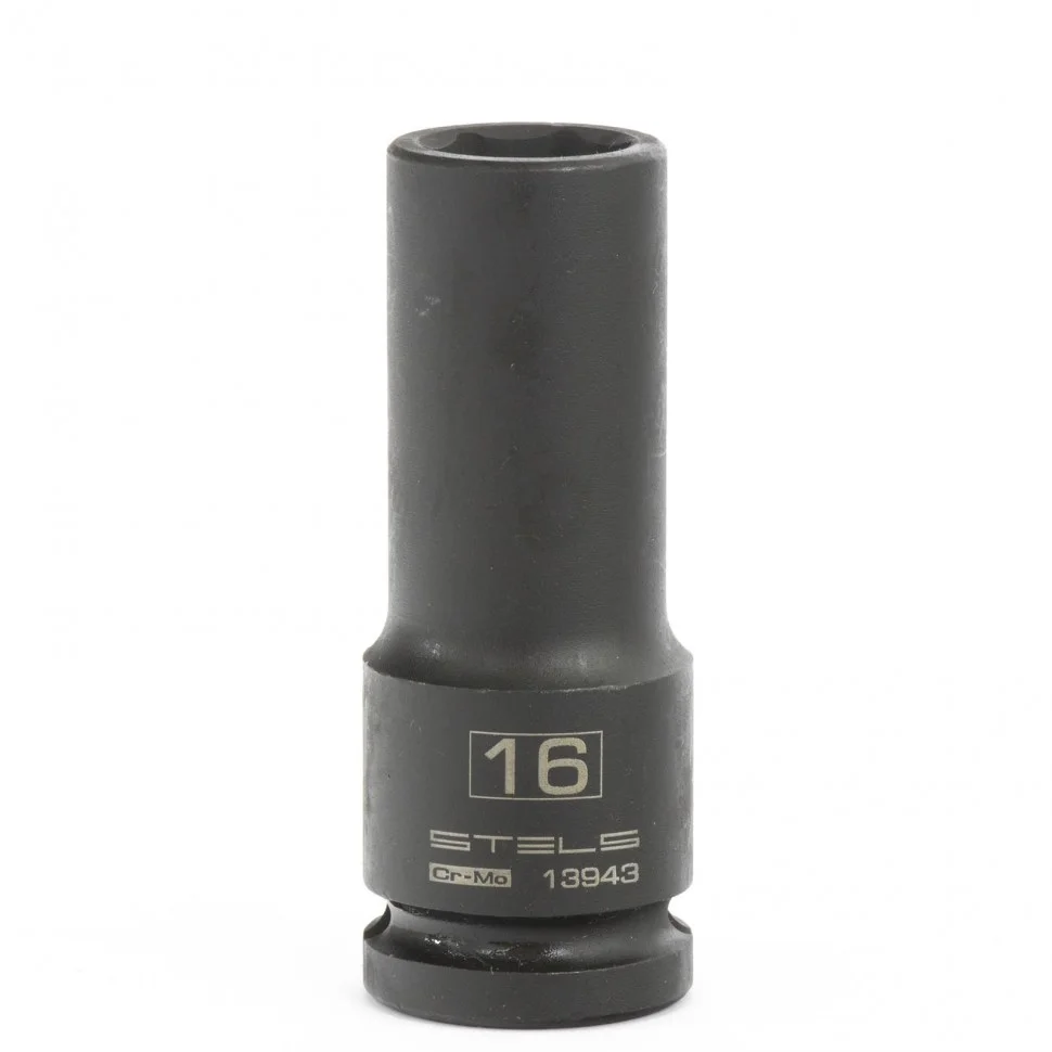 Головка ударная удлиненная шестигранная, 16 мм, 1/2, CrMo Stels 13943