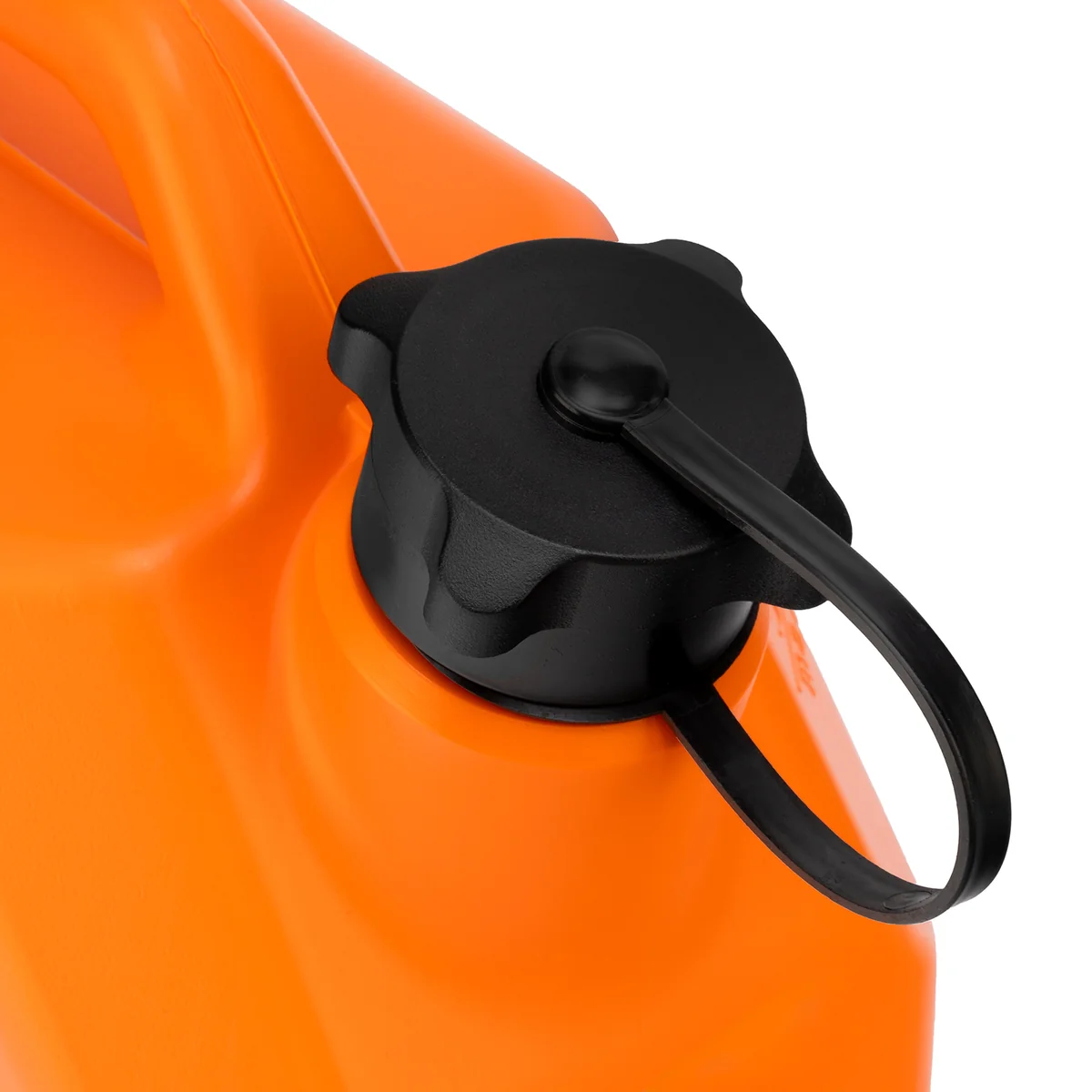 - Оптимальный объем — канистра обеспечивает запас топлива 5 л для дозаправки автомобиля и садовой бензотехники.