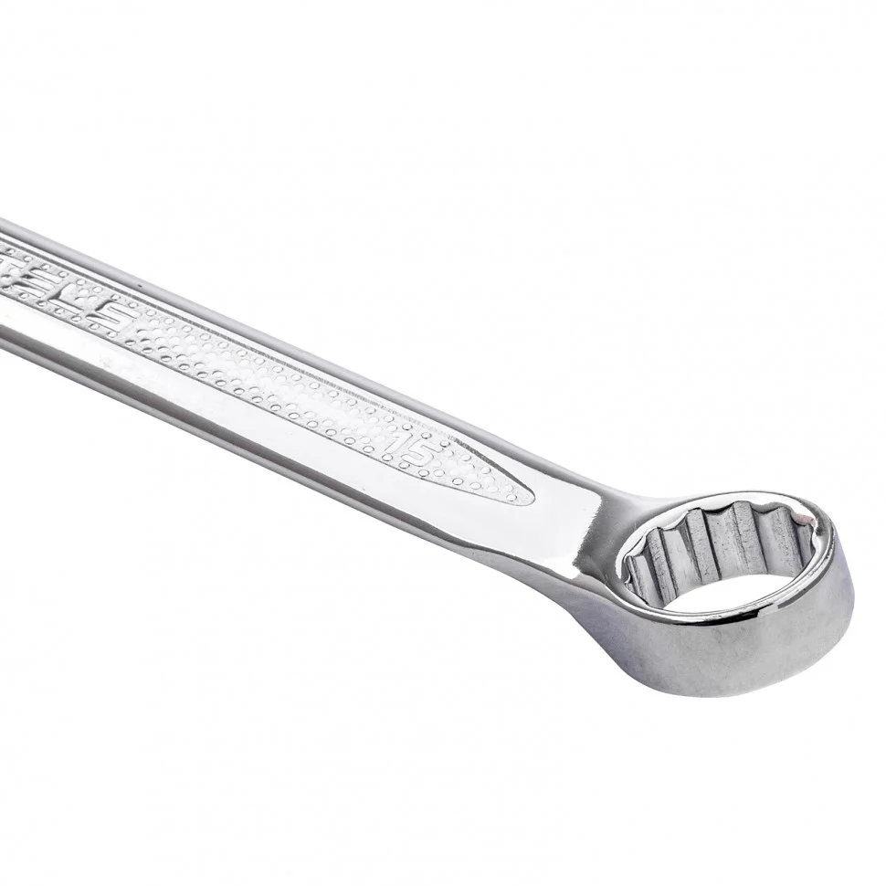Комбинированный ключ Stels 15252 из стали CrV, 15 мм, антислип, позволяет откручивать и закручивать резьбовые соединения. Универсален в применении, т.к. имеет кольцевую и рожковую головки. 12-гранный профиль накидного зева обеспечивает увеличенную площадь контакта с поверхностью крепежа, что минимизирует вероятность его деформации. Ключ будет полезен в автомастерской, для монтажа и демонтажа оборудования, пригодится для работ по дому.ПреимуществаВысокий показатель прочности — инструмент изготовлен из стали хромованадиевой группы, твердость рабочей части составляет 42-50 HRC.Улучшенные антикоррозионные свойства и повышенная износостойкость благодаря хромированному покрытию.Удобство при выполнении монтажных работ — кольцевой зев смещен на 15 градусов относительно тела ключа.Надежный хват — благодаря рельефной поверхности ключ не скользит в руке.