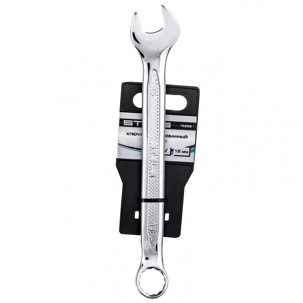 Ключ комбинированный, 15 мм, CrV, антислип Stels 15252